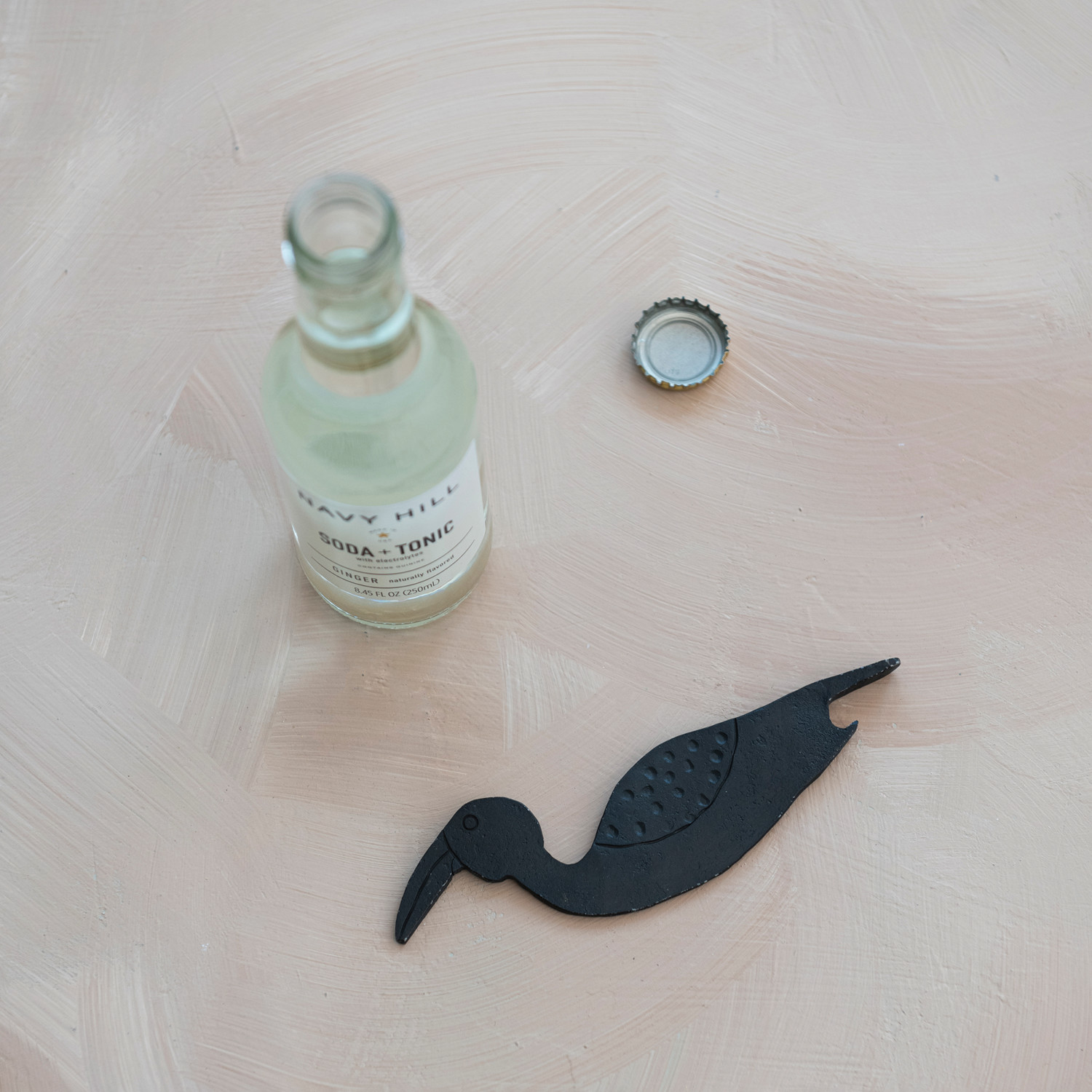 Our thoughtfully crafted collection of barware and decor showcases an expansive selection of functions, designs, and styles created for the modern host. Elevate cocktail hour or evening gatherings with an offering of stylishly versatile pieces including cocktail shakers, mortar and pestles, strainers, bottle openers, champagne flutes, coupes, decanters, martini glasses, wine racks, and so much more. Choose from an array of materials from stainless steel to wood and styles from Mid-Century Modern to Boho chic. Curate a dazzlingly elegant display on a bar cart or inside a display cabinet to impress guests and add a hint of playful flair to any gathering space. This nautical metal bottle opener features the silhouette of a coastal bird in a textured finish. This piece is food safe. Not dishwasher safe. Made from iron.