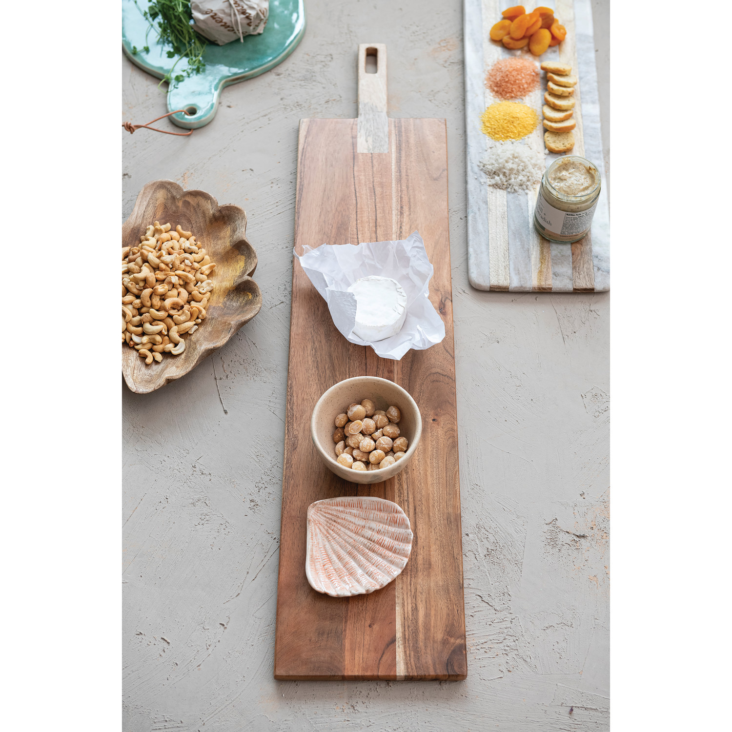 Catalog Name: 35"L x 7-1/2"W Acacia & Mango Wood Cheese/Serving Board w/ Handle, Natural