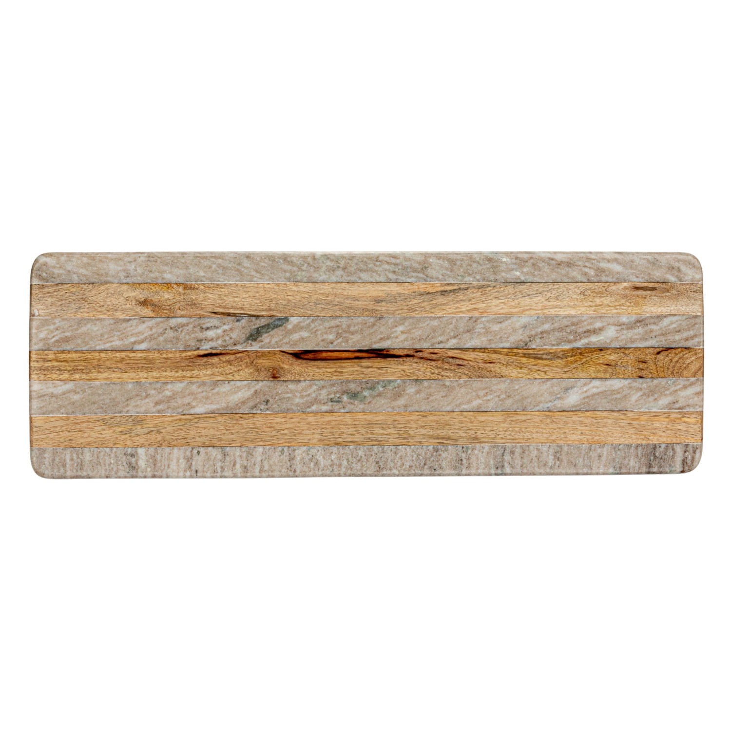 Catalog Name: 21"L x 7"W Marble & Mango Wood Striped Cheese/Serving Board, Buff & Natural