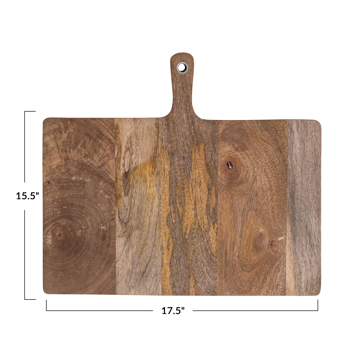 Catalog Name: 17-1/2"L x 15-1/2"W Mango Wood Cheese/Serving Board w/ Handle, Natural