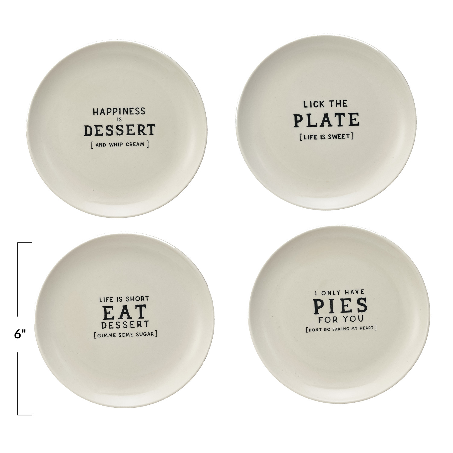 Catalog Name: 6" Round Stoneware Plate w/ Wax Relief Saying, White & Black, 4 Styles ©