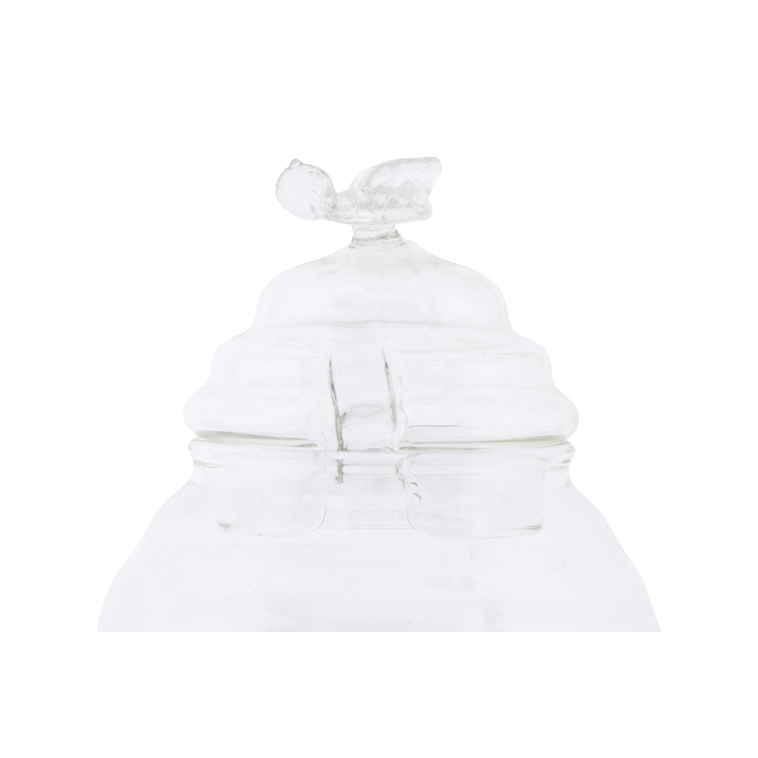 Honey should be served in this clear honey pot. The delicious honey can be seen inside, with a bamboo dipper that fits through an opening in the lid, and allows it to stay inside when the lid is closed.