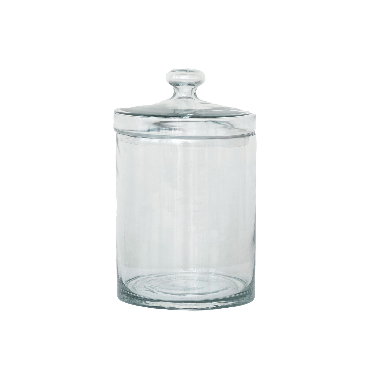This Round Cup Glass Jar with Lid is a blend of functionality and decorative appeal. The clear glass allows for easy identification of the contents, while the embossed design adds a touch of sophistication. Whether used to store kitchen essentials or as an elegant way to display collectibles, this jar fits seamlessly into a variety of decor styles. It measures 5.25 inches in diameter and 8.75 inches in height, offering ample space for storage needs. Its round shape and size are perfect for both practical storage and aesthetic display, making it a versatile addition to any farmhouse, French country, or vintage setting. The jar's classic design ensures it will remain a cherished piece for years to come.