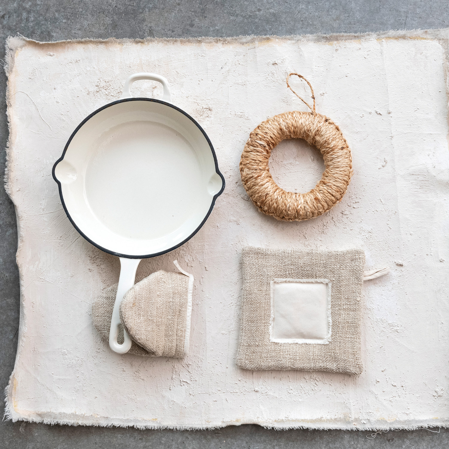 Catalog Name: 7" Round Woven Jute Trivet w/ Loop, Natural