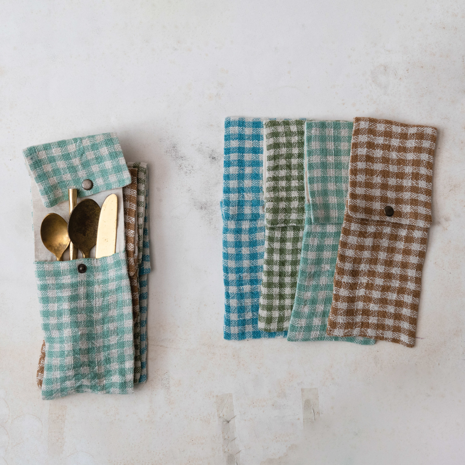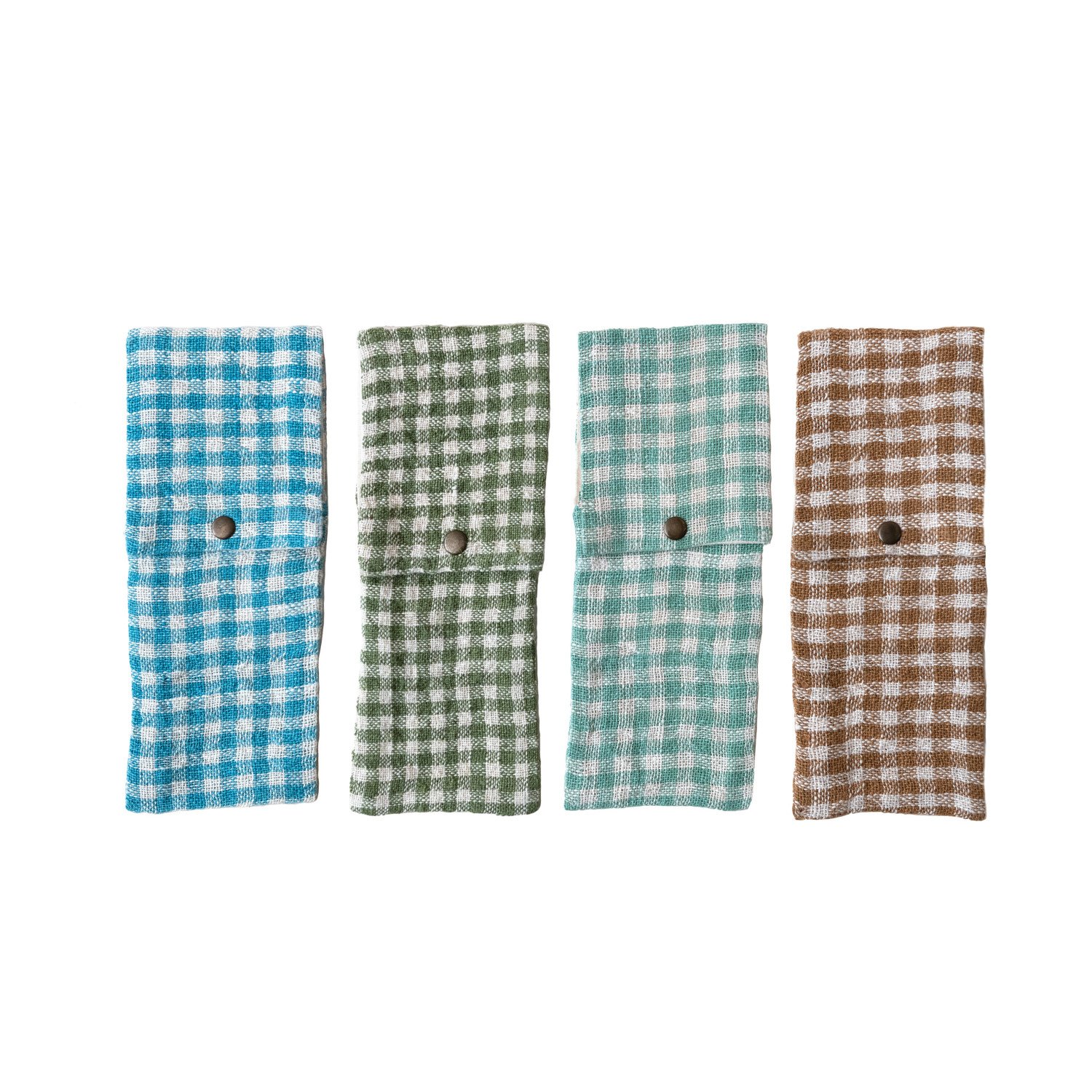 Woven Linen & Cotton Cutlery Sleeve w/ Snap Closure & Gingham Pattern, 4 Colors