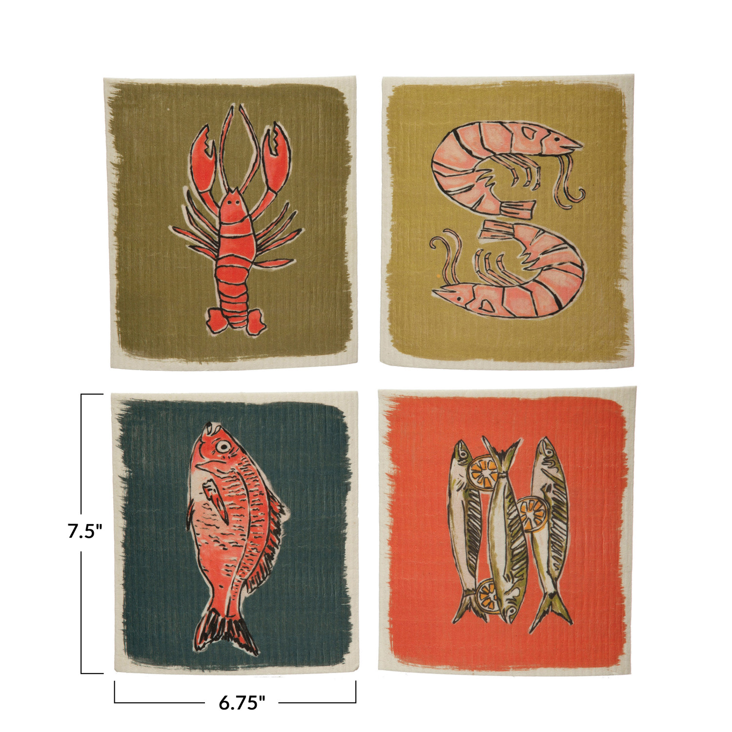 Reusable Cellulose Sponge Cloth w/ Sea Life, Multi Color, 4 Styles ©