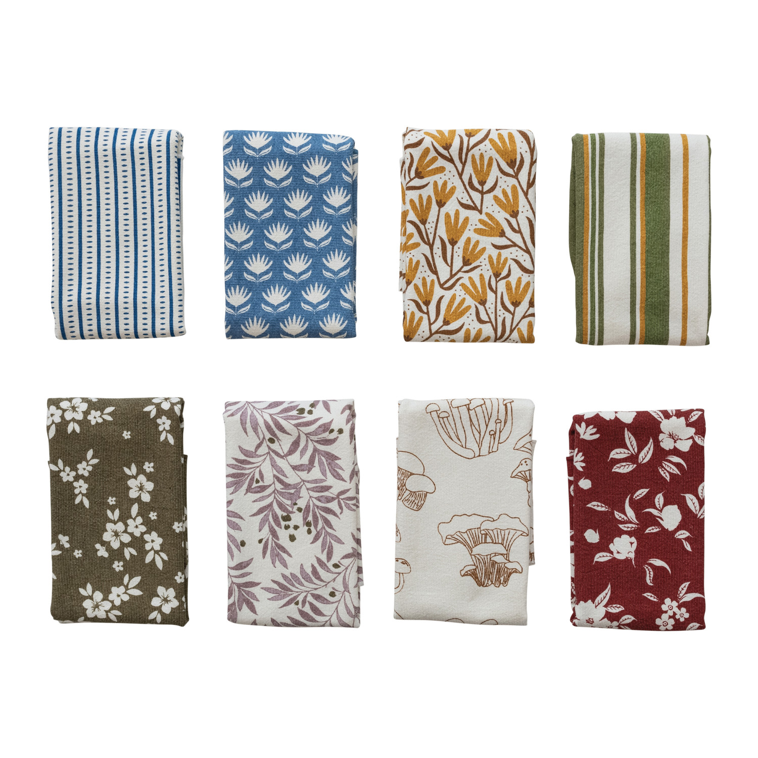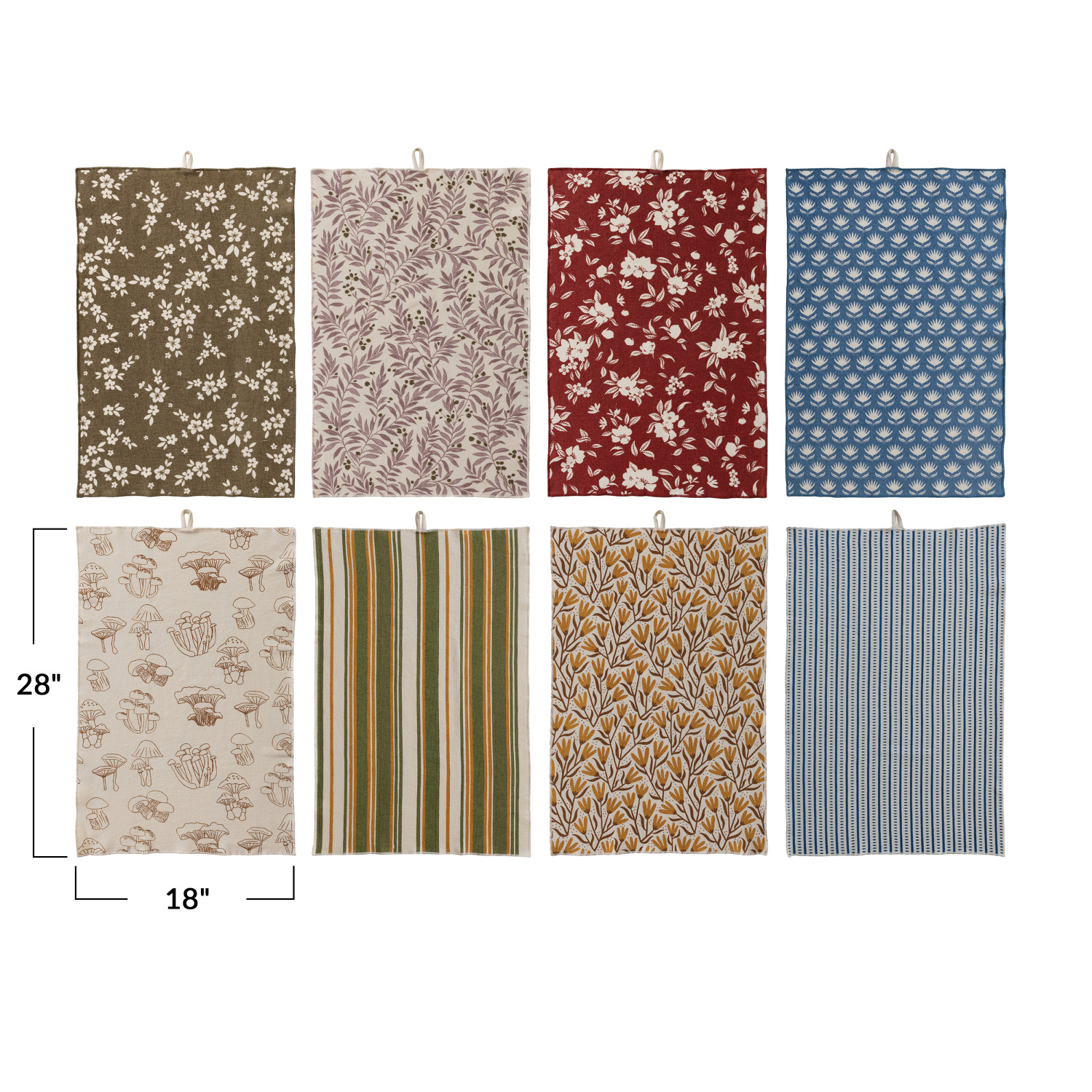 Catalog Name: 28"L x 18"W Cotton Printed Terry Cloth Tea Towel w/ Pattern/Stripes & Stitched Edge, Multi Color, 8 Styles