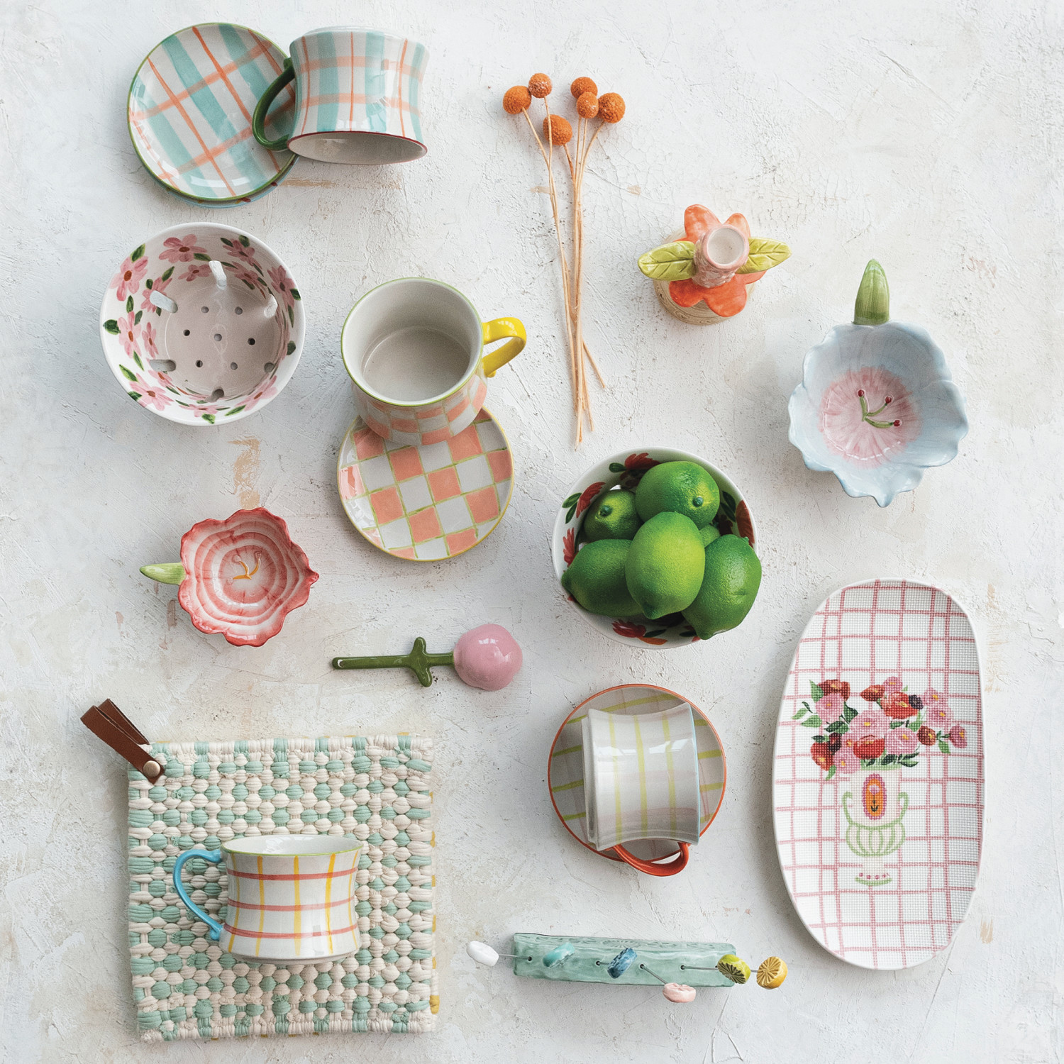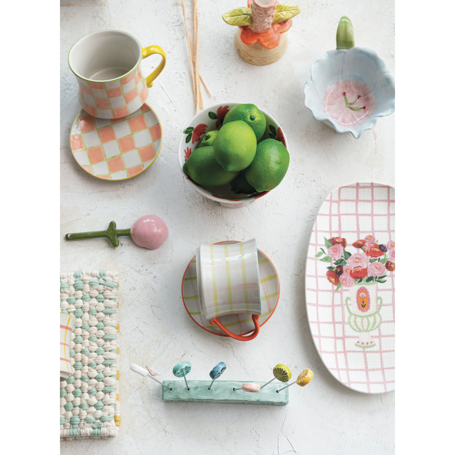 8 oz. Hand-Painted Stoneware Mug w/ Pattern, 4 Styles