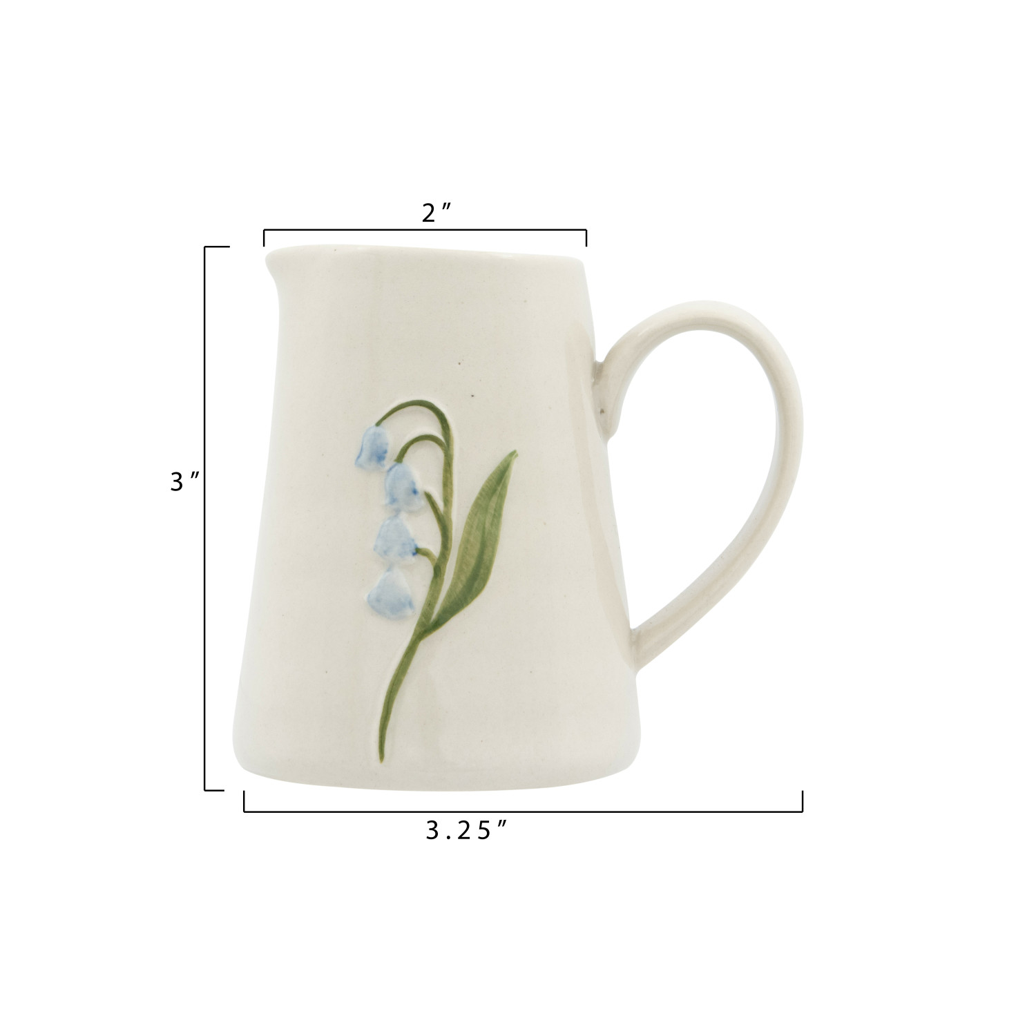 Catalog Name: 3-1/4"L x 2-1/2"W x 3"H 6 oz. Hand-Painted Embossed Stoneware Creamer, Multi Color, 6 Styles