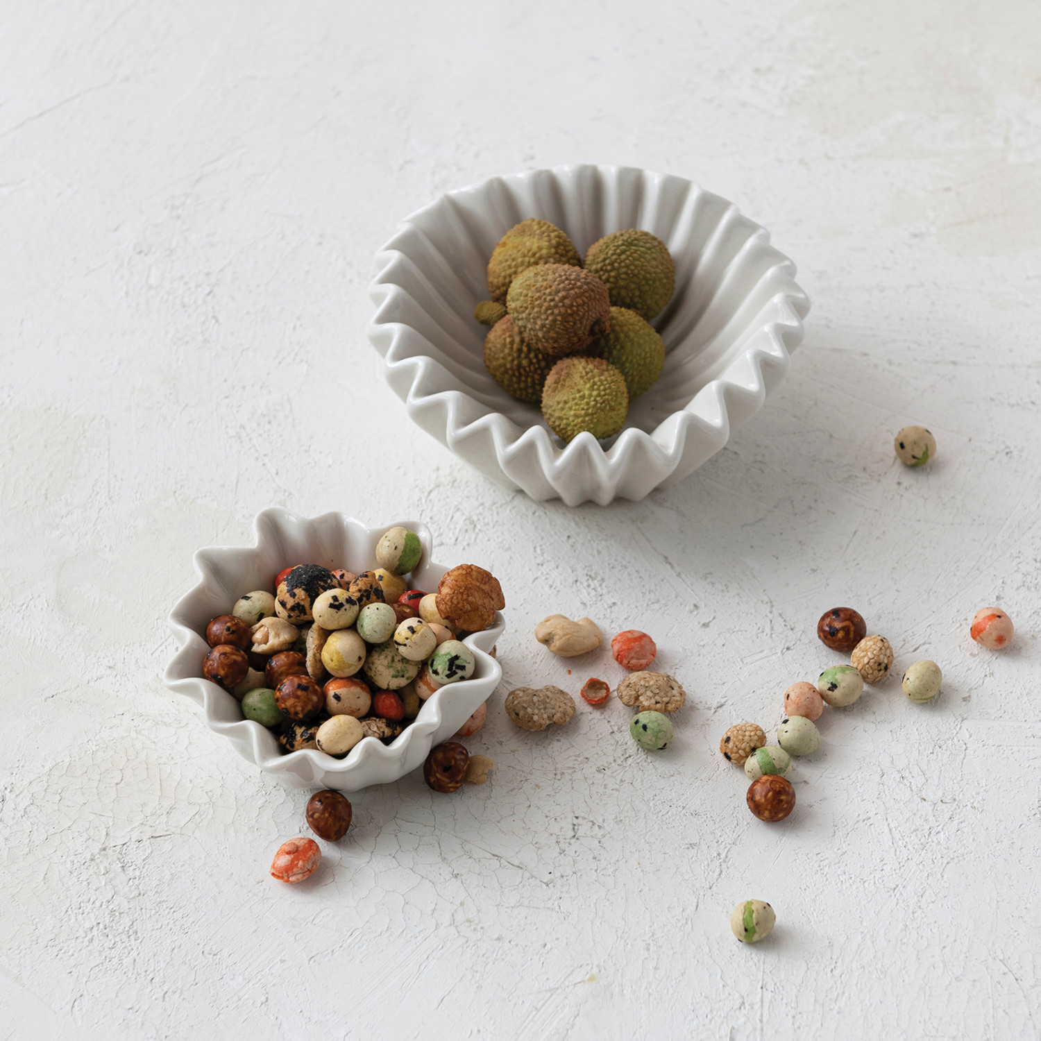 Our thoughtfully crafted collection of serve ware showcases an expansive selection of natural materials and artisanal silhouettes that are all intentionally designed for the modern host. Elevate gatherings of friends and family with an offering of stylishly versatile pieces including serving bowls, pitchers, platters, crocks, ladles, salt and pepper shakers, pinch pots, tiered trays, creamers, appetizer boards, serving trays, so much more. Choose from a wide array of materials from marble to wood, and styles from rustic and modern to farmhouse and glam. Curate a dazzlingly elegant display for a dinner party, or simply add a touch of style to daily rituals with a piece that is sure to impress. This cottage-inspired stoneware bowl features a fluted silhouette and zig zag edge. This piece is food safe. Dishwasher safe. Made from stoneware.