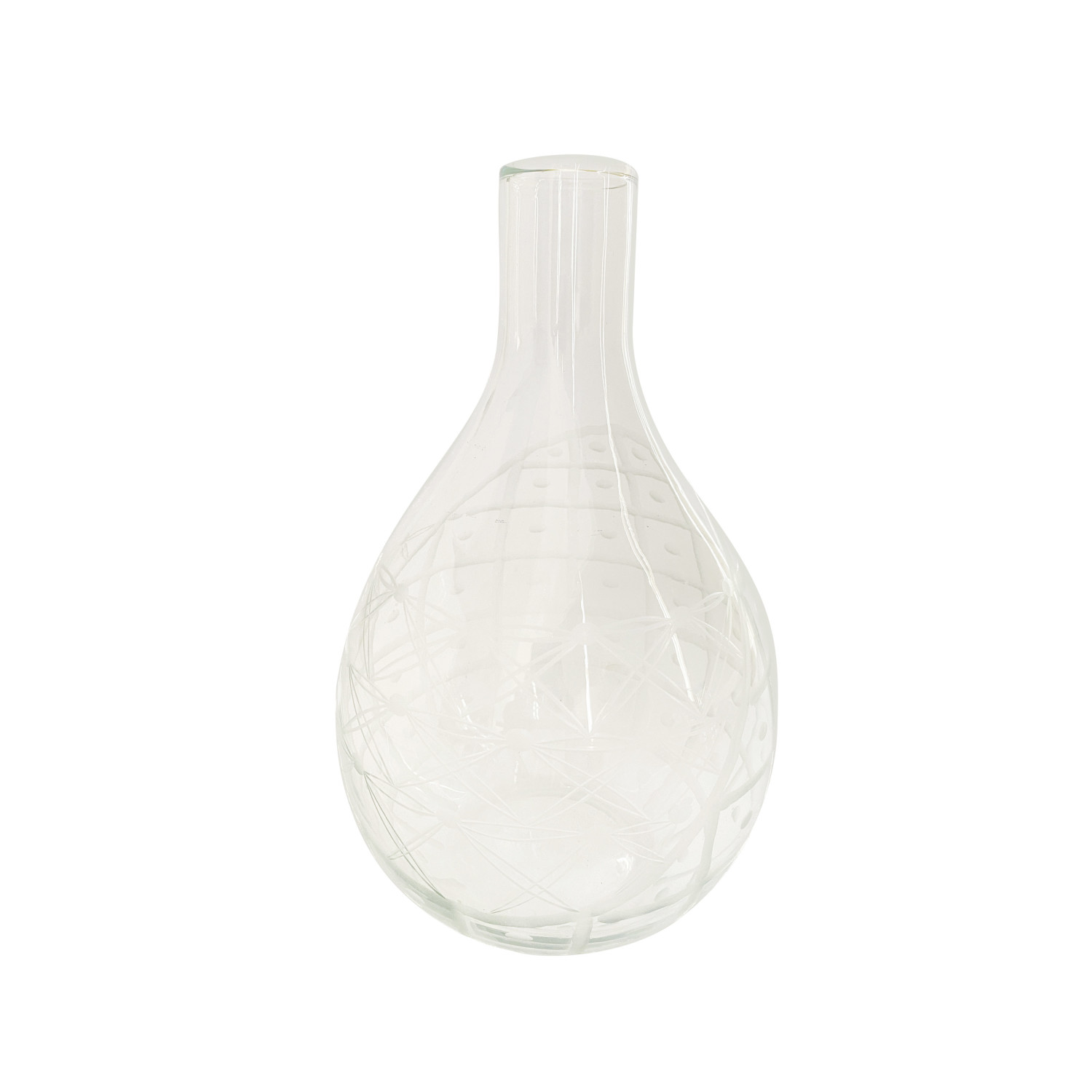 Catalog Name: 7" Round x 11-3/4"H 3-1/2 Quart Hand-Blown Recycled Etched Glass Carafe