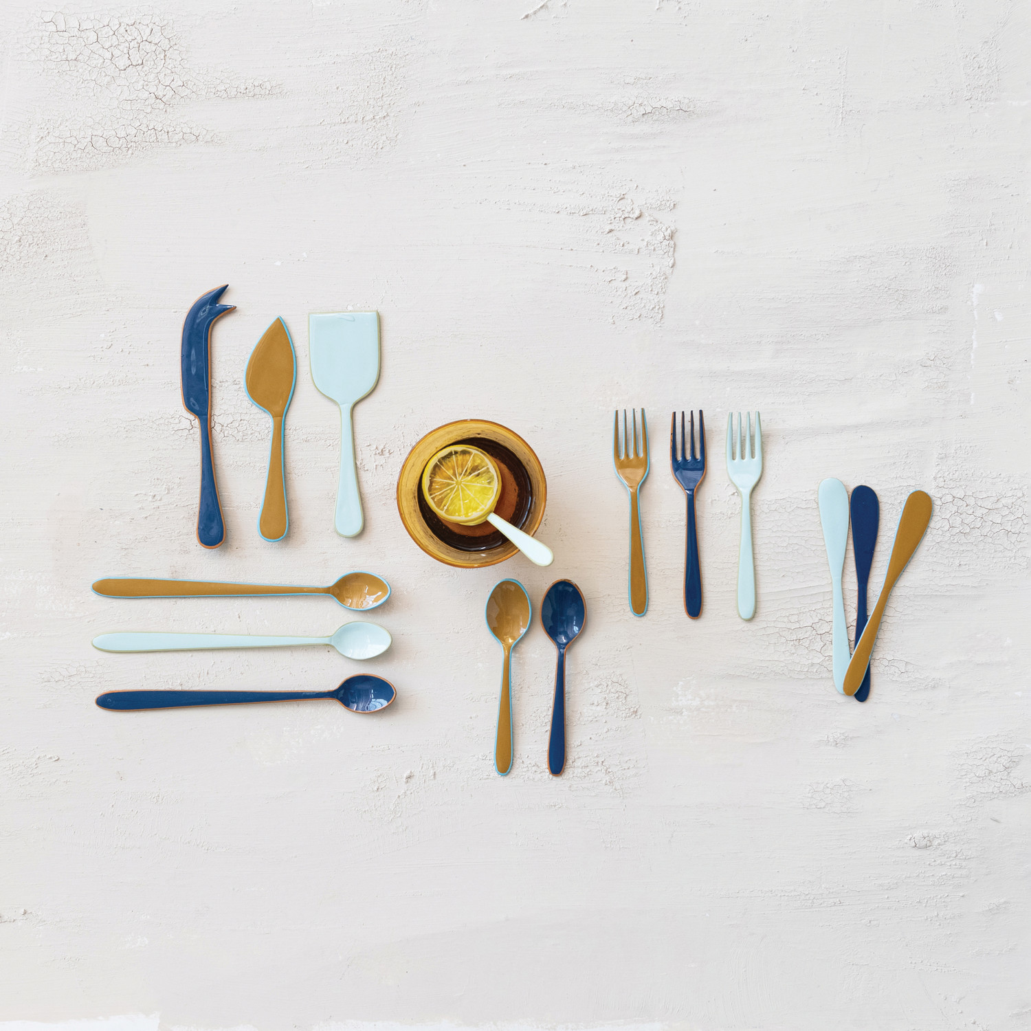 Enameled Stainless Steel Fork with Colored Edge, 3 Colors