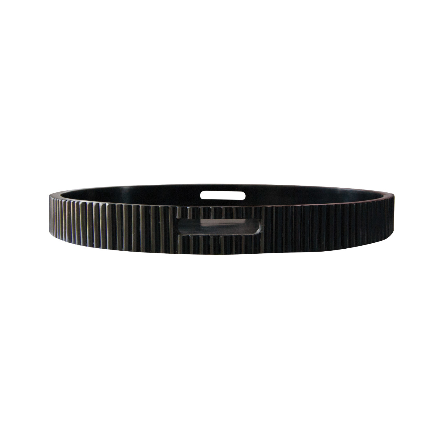 Catalog Name: 20" Round x 2"H Resin Ribbed Tray w/ Handles, Black