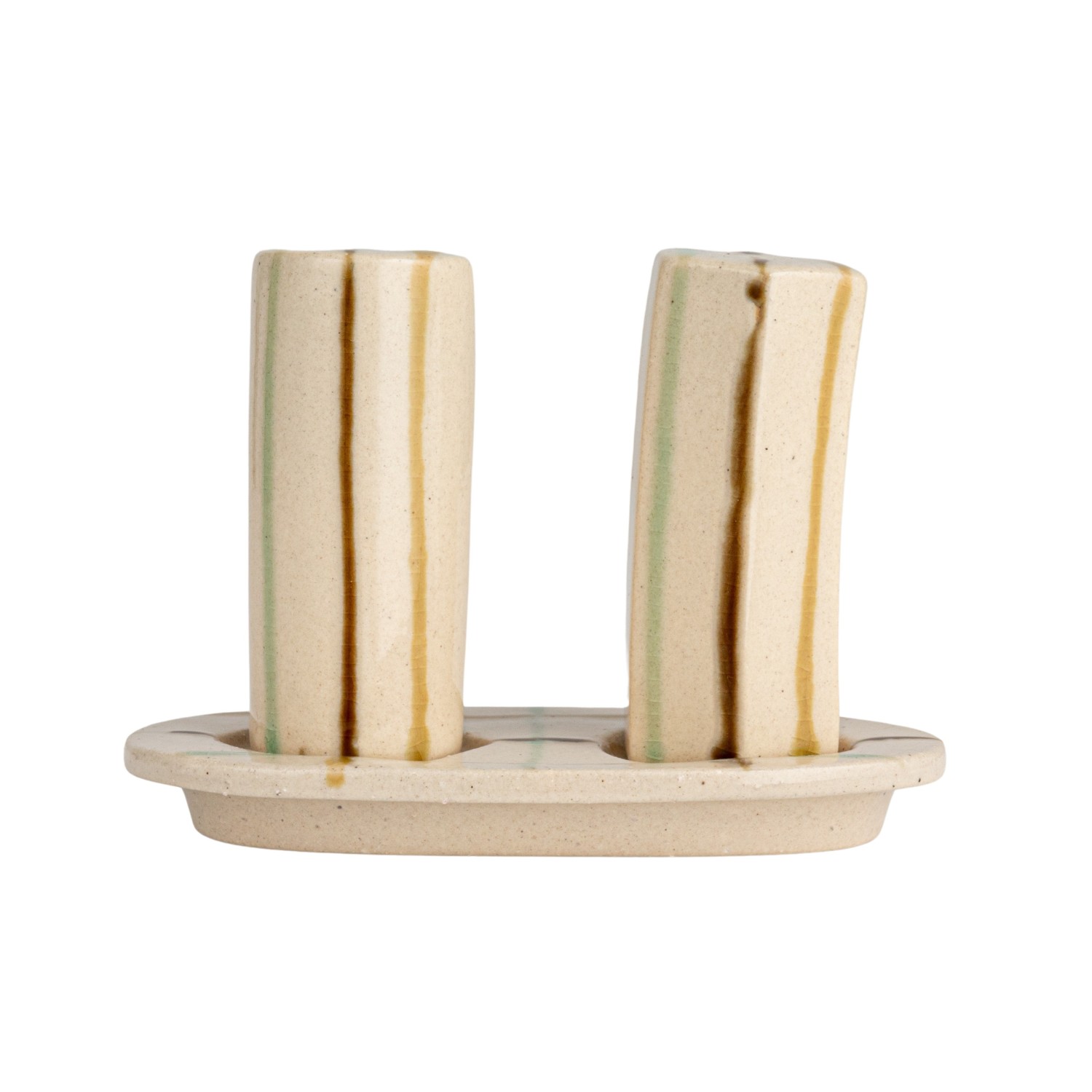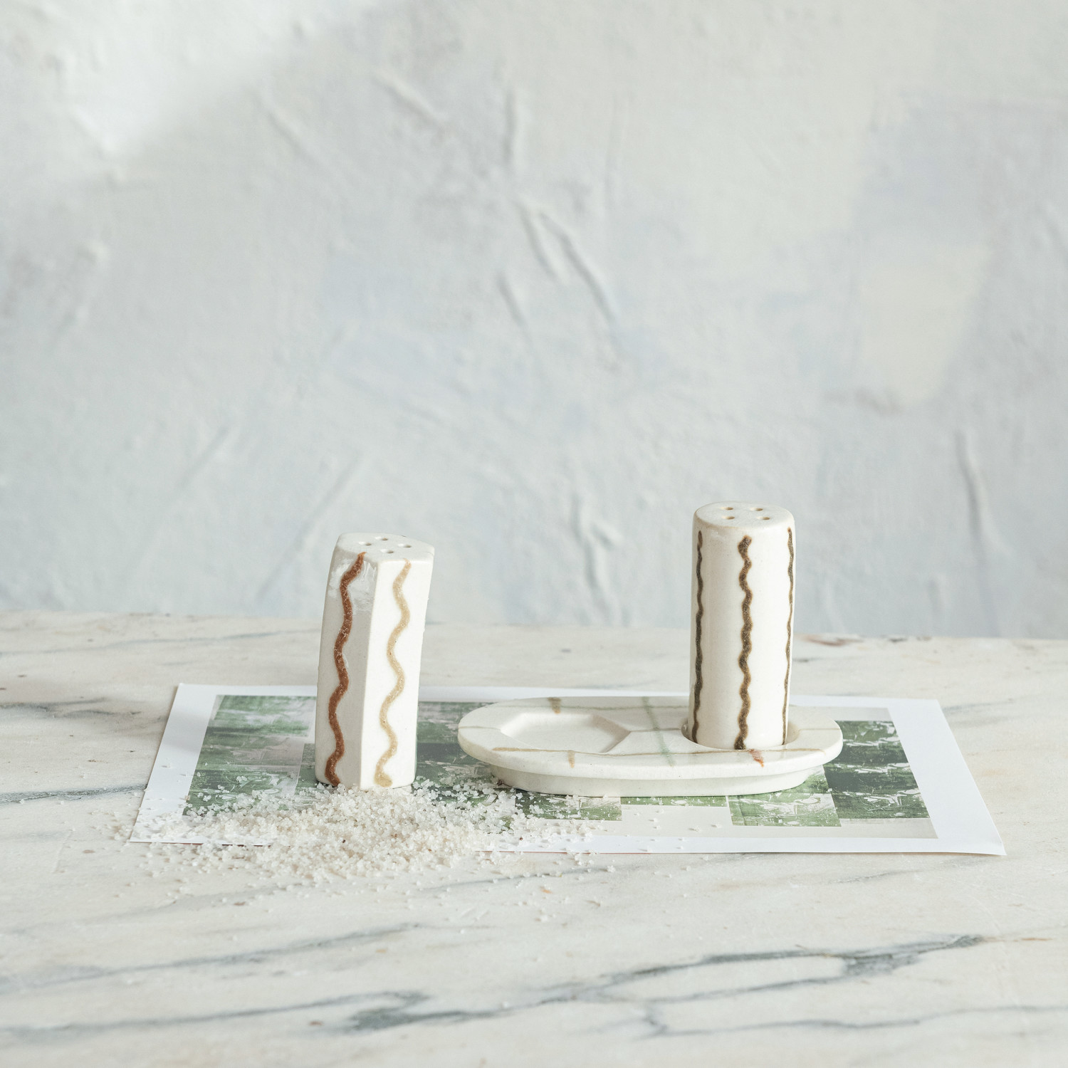 Hand-Painted Salt & Pepper Shakers w/ Tray, Set of 3 (Each One Will Vary)