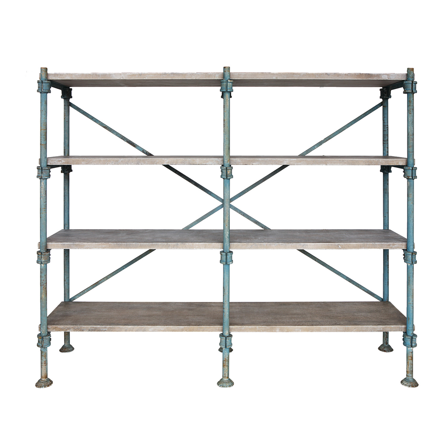 Catalog Name: 90-1/2"W x 25-1/4"D x 78-1/4"H Wood & Metal Vintage Reproduction 4-Tier Shelf, Distressed Blue & Natural, Truck Ship