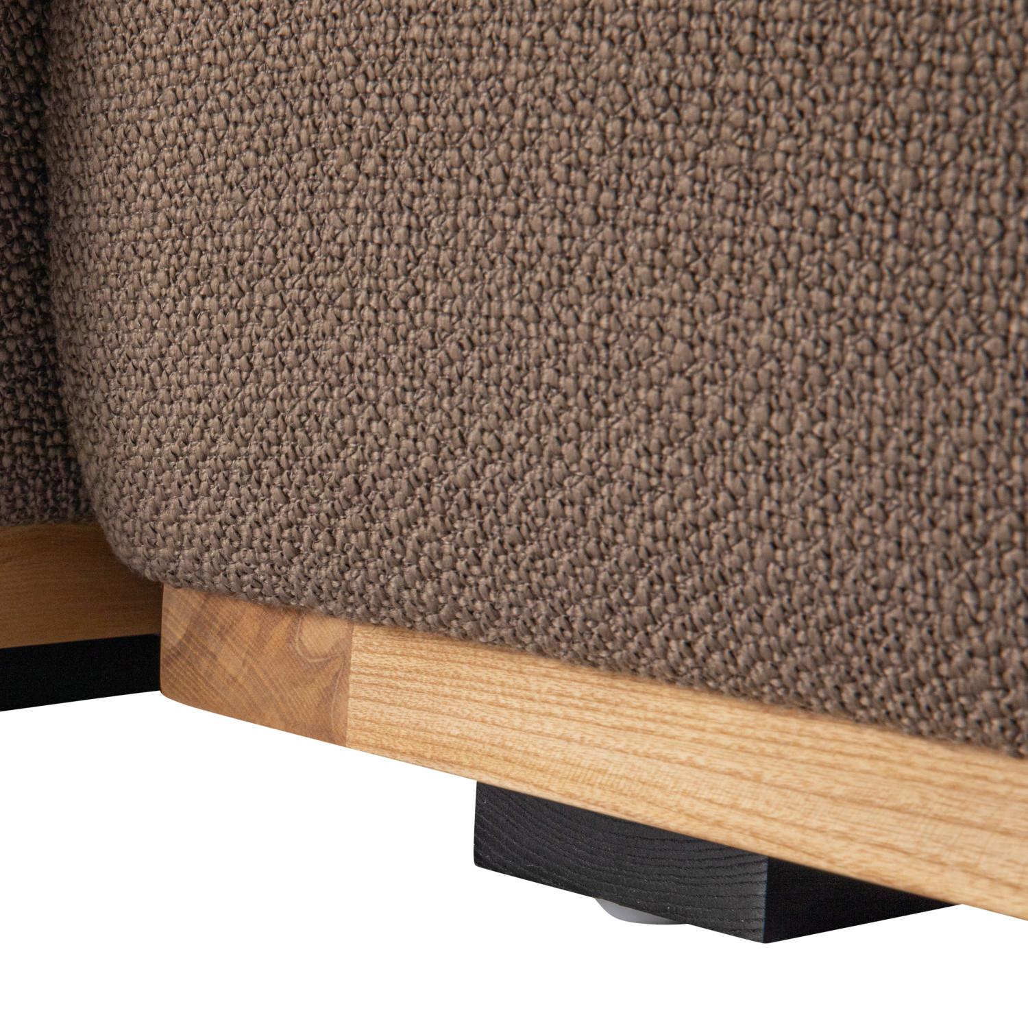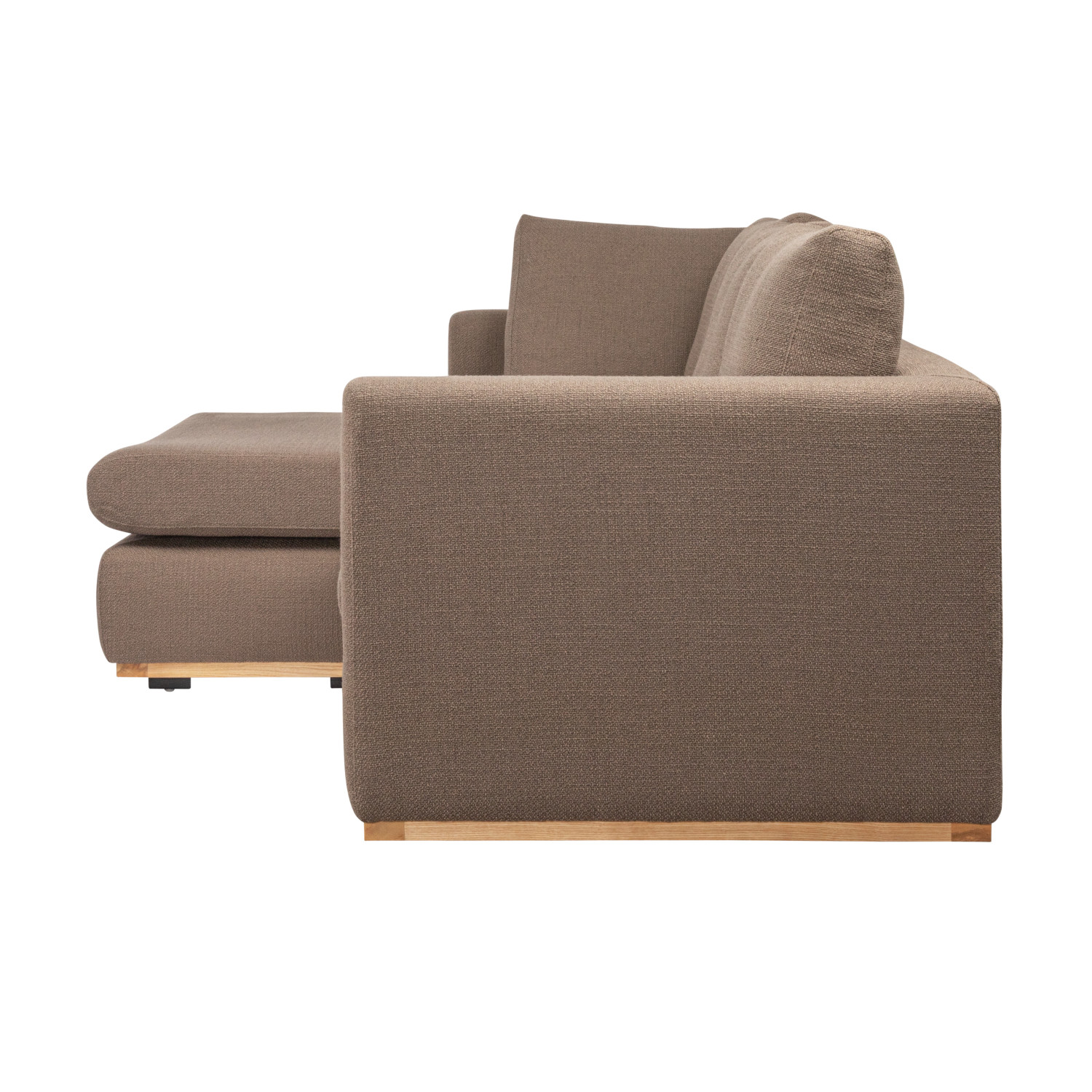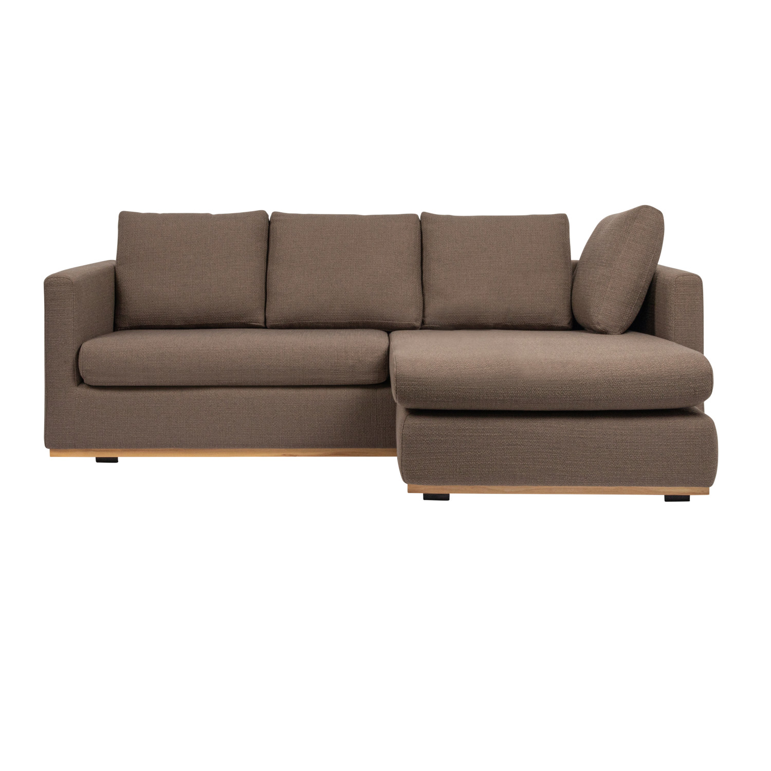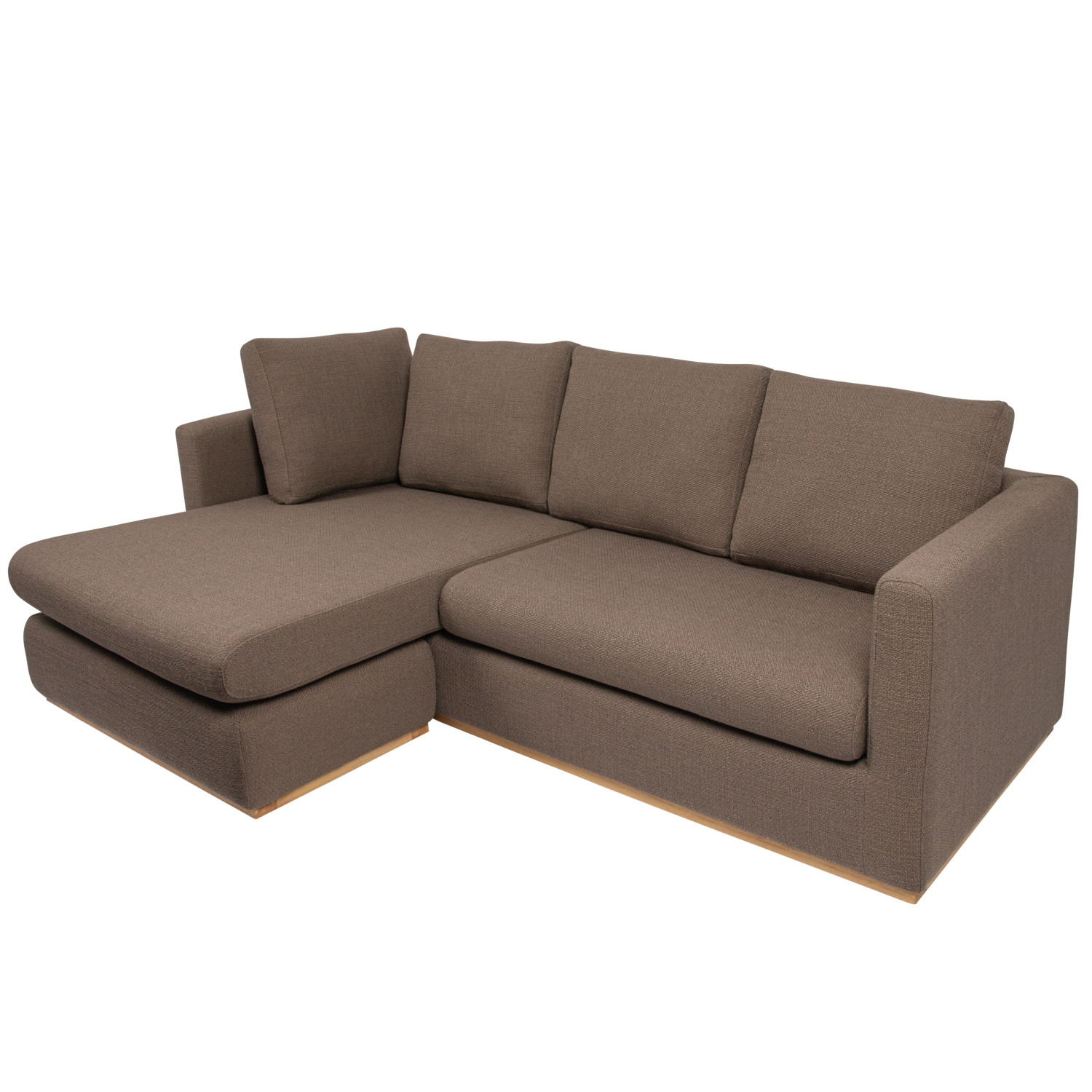 Modern L Shaped Sofa with Interchangeable Chaise Lounge and Wood Trim, Mushroom Brown