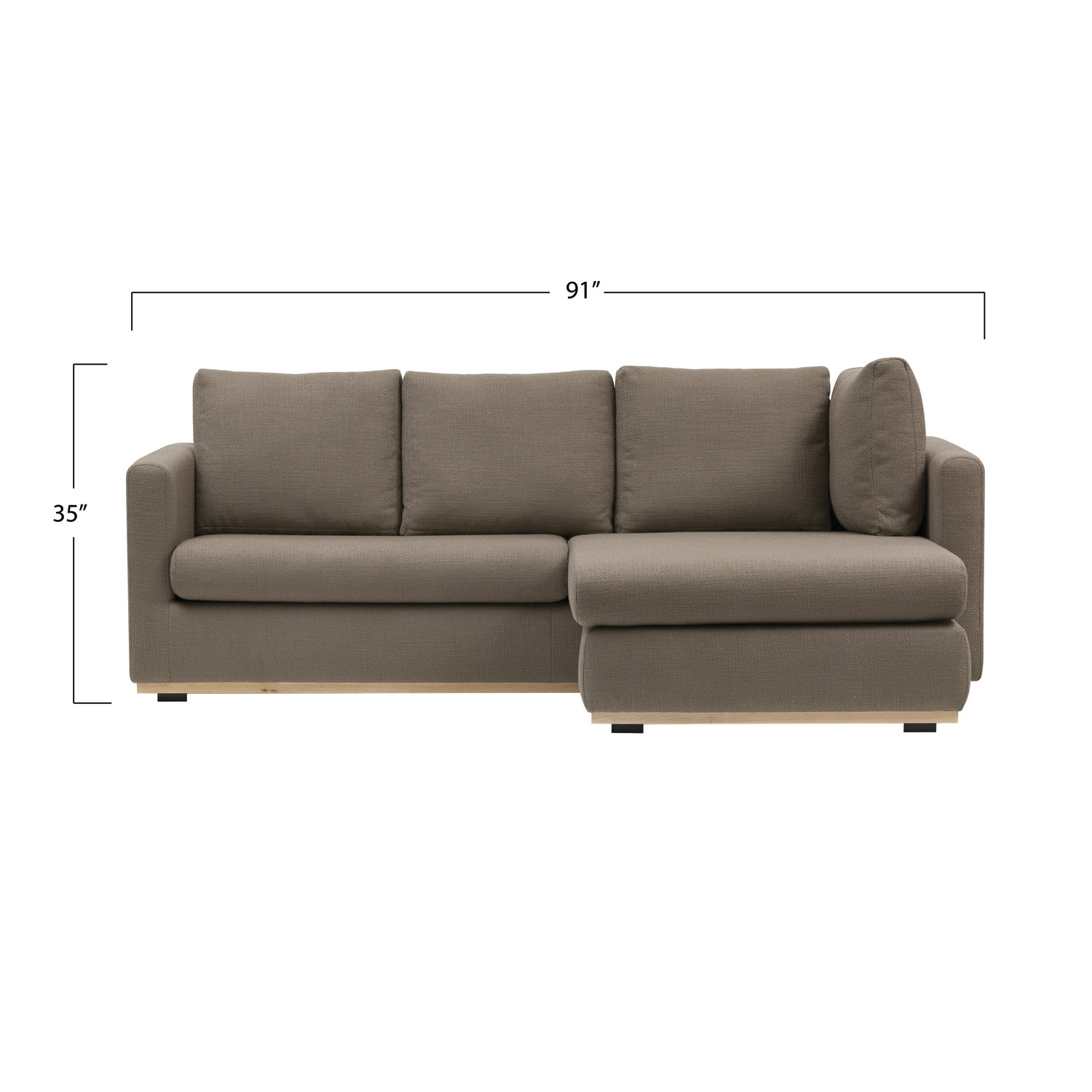 Catalog Name: 91"W x 37"D x 27"H Sectional Sofa w/ Wood Trim, Mushroom