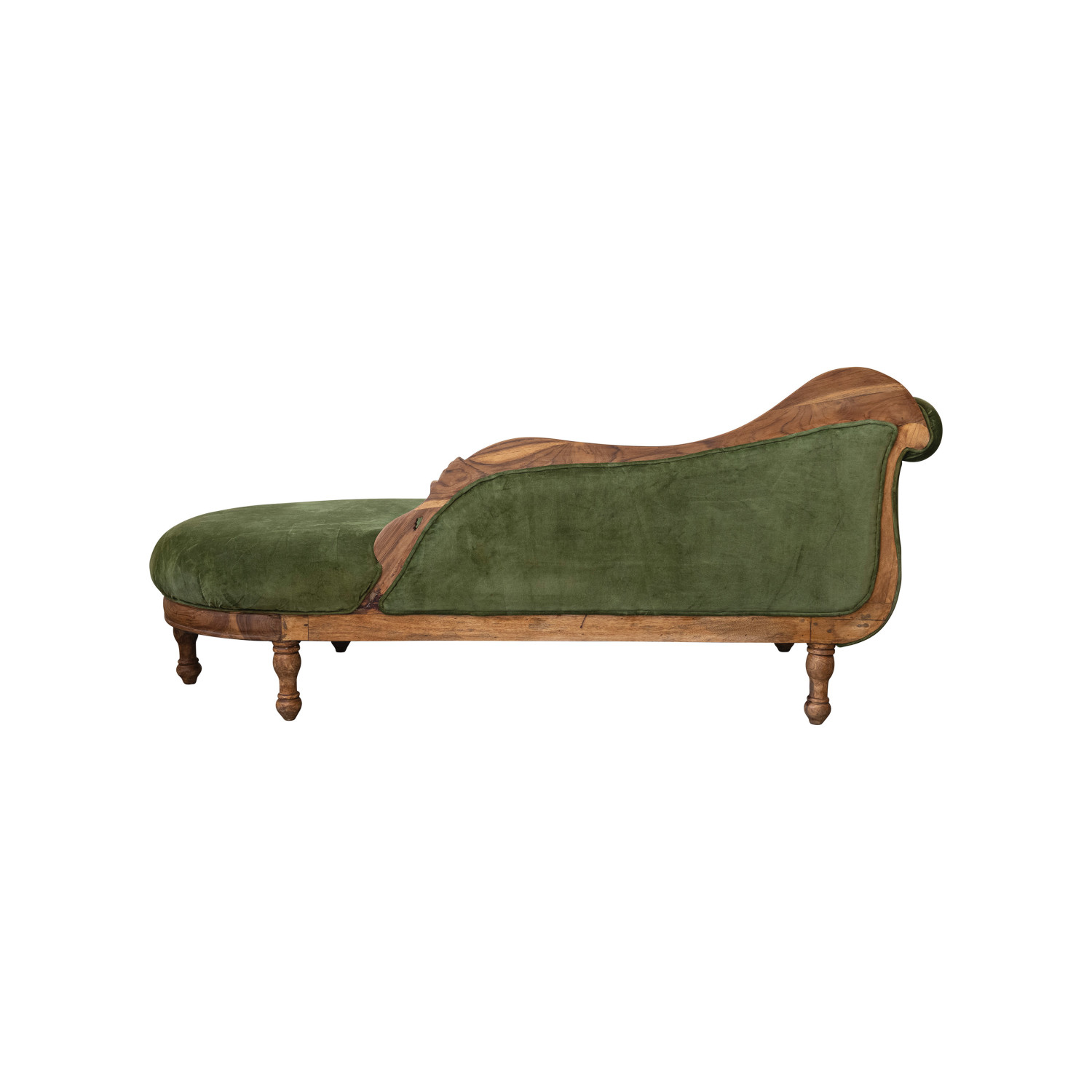 Catalog Name: 78"W x 32"D x 34"H Cotton Velvet Upholstered Chaise Lounge w/ Carved Mango Wood Frame, Green & Natural, Truck Ship