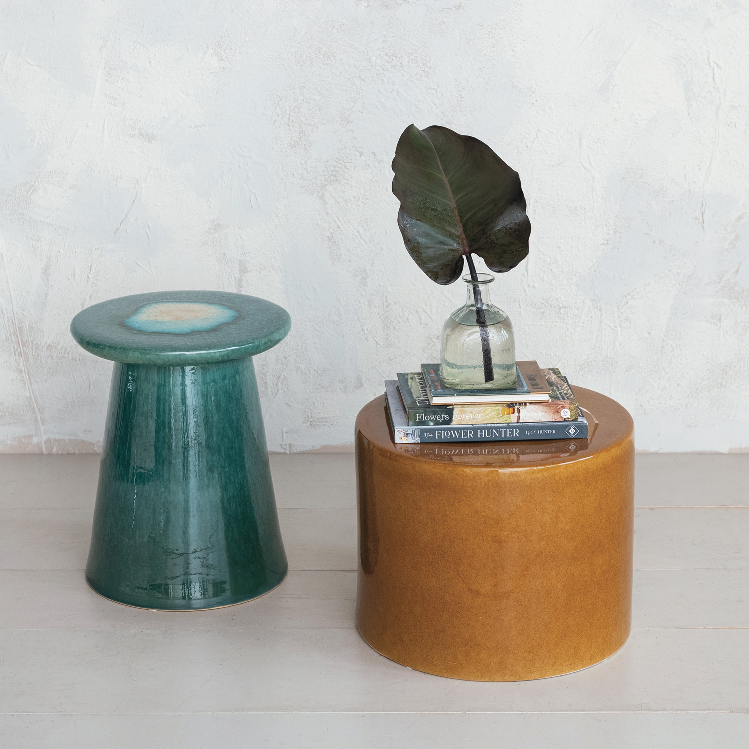 Stoneware Table/Stool, Mustard Color (Each One Will Vary)