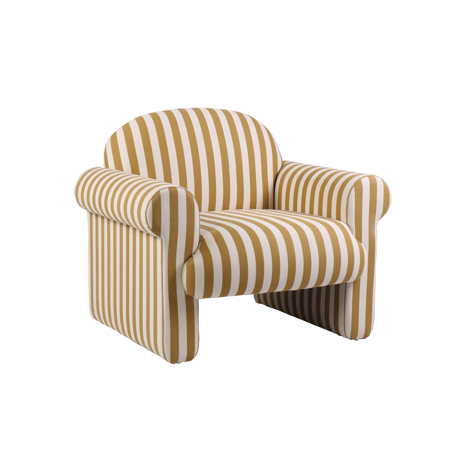 Catalog Name: 38-1/4"W x 32"D x 32-1/2"H Fabric Upholstered Striped Chair, Cream & Mustard Color, Truck Ship