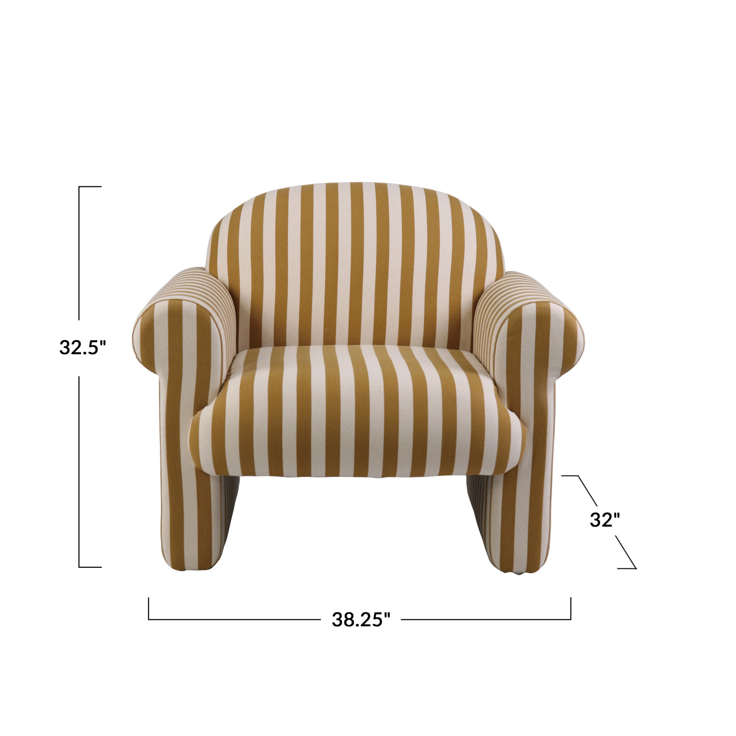Fabric Upholstered Striped Chair, Cream & Mustard Color