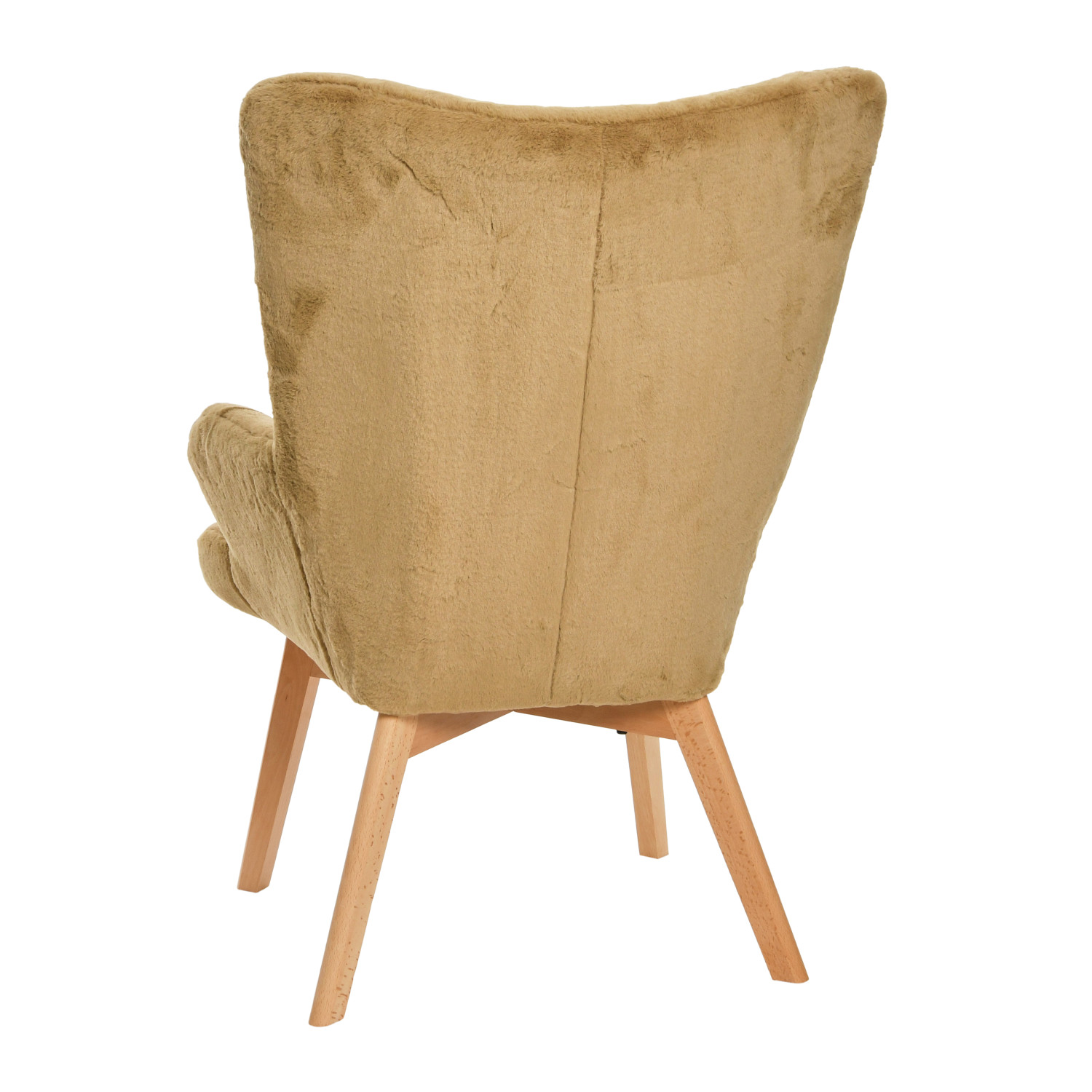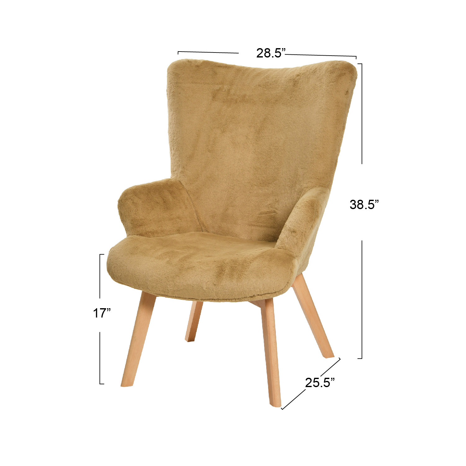 Napster Fuzzy Plush Upholstery Wingback Arm Chair with Solid Wood Legs