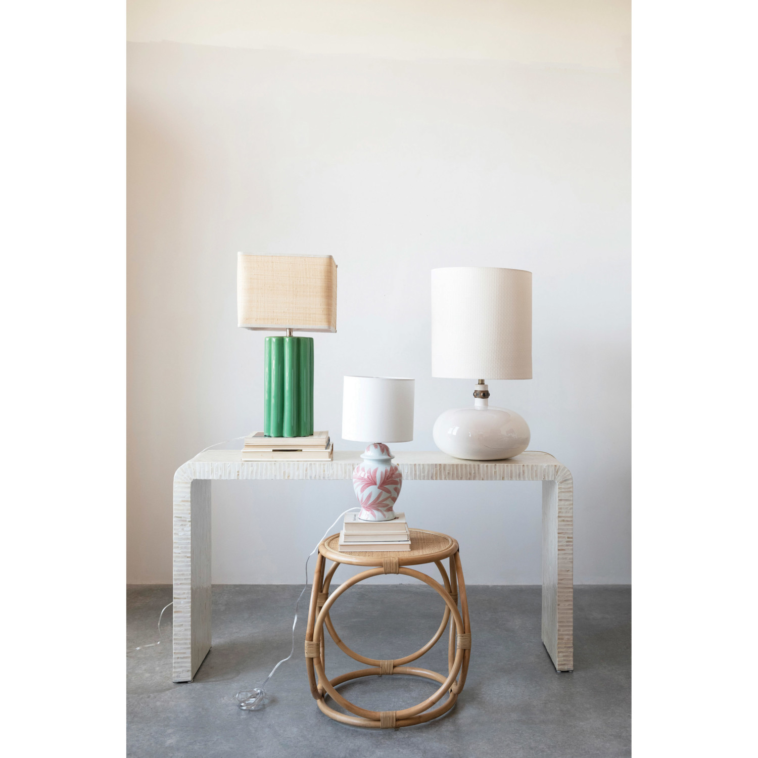 Catalog Name: 15" Square x 28-1/2"H Stoneware Fluted Table Lamp w/ Raffia Shade, Green & Natural, Truck Ship
