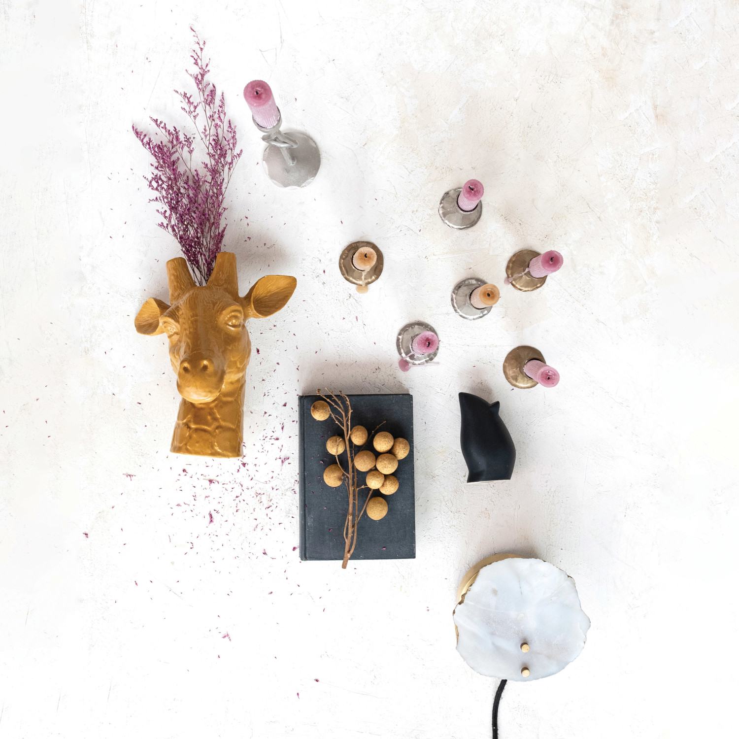 Brighten up any home or office with these floor and table lamps collections. These floor and table lamps collections provide a variety of lamps that can match any space and style, from classic to contemporary. Find lamps in different shapes and sizes, such as arc, tripod, swing-arm, globe, cylinder, and more to choose from. Different materials and finishes of lamps, such as metal, wood, glass, ceramic, fabric, and more, are also available. The perfect lamp for reading, working, or creating ambiance can be found here. Check and find today the best floor and table lamps for any space. Illuminate walls with style and elegance using this captivating wall lamp that combines organic elements with modern design, featuring agate slice, with its unique patterns and hues, and is showcased by the sleek metal frame in a natural and brass finish. Install it as a statement piece or use it to create ambient lighting that showcases the beauty of the agate slice, the perfect fit for contemporary and eclectic interior styles. This lamp has a maximum 40-watt bulb capacity (not included) and an inline switch for easy control of the light and the mood of any space. Made of agate and metal.