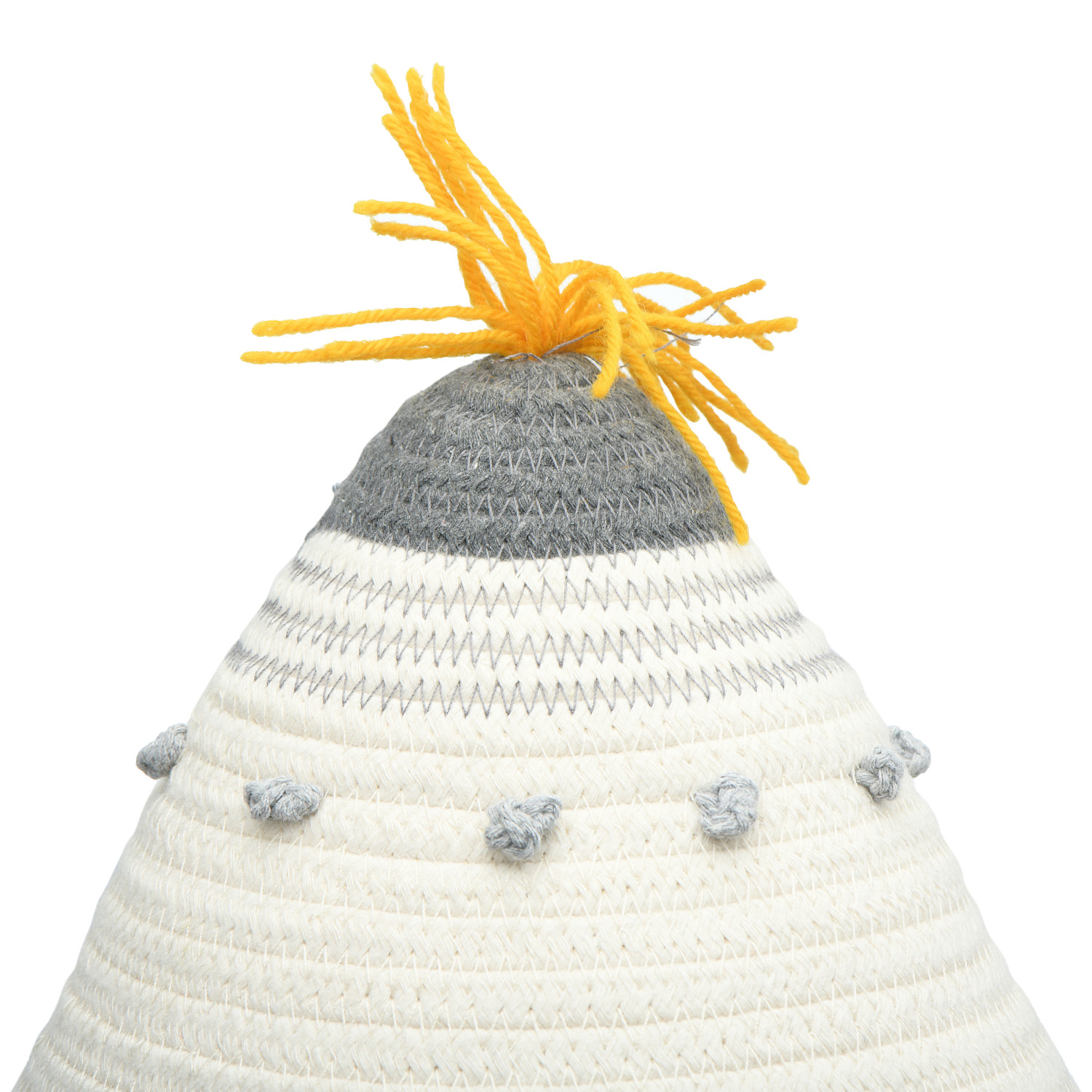 Catalog Name: 9-1/2" Round x 11"H Cotton Rope Basket w/ Lid & Embroidery, Grey & Mustard Color