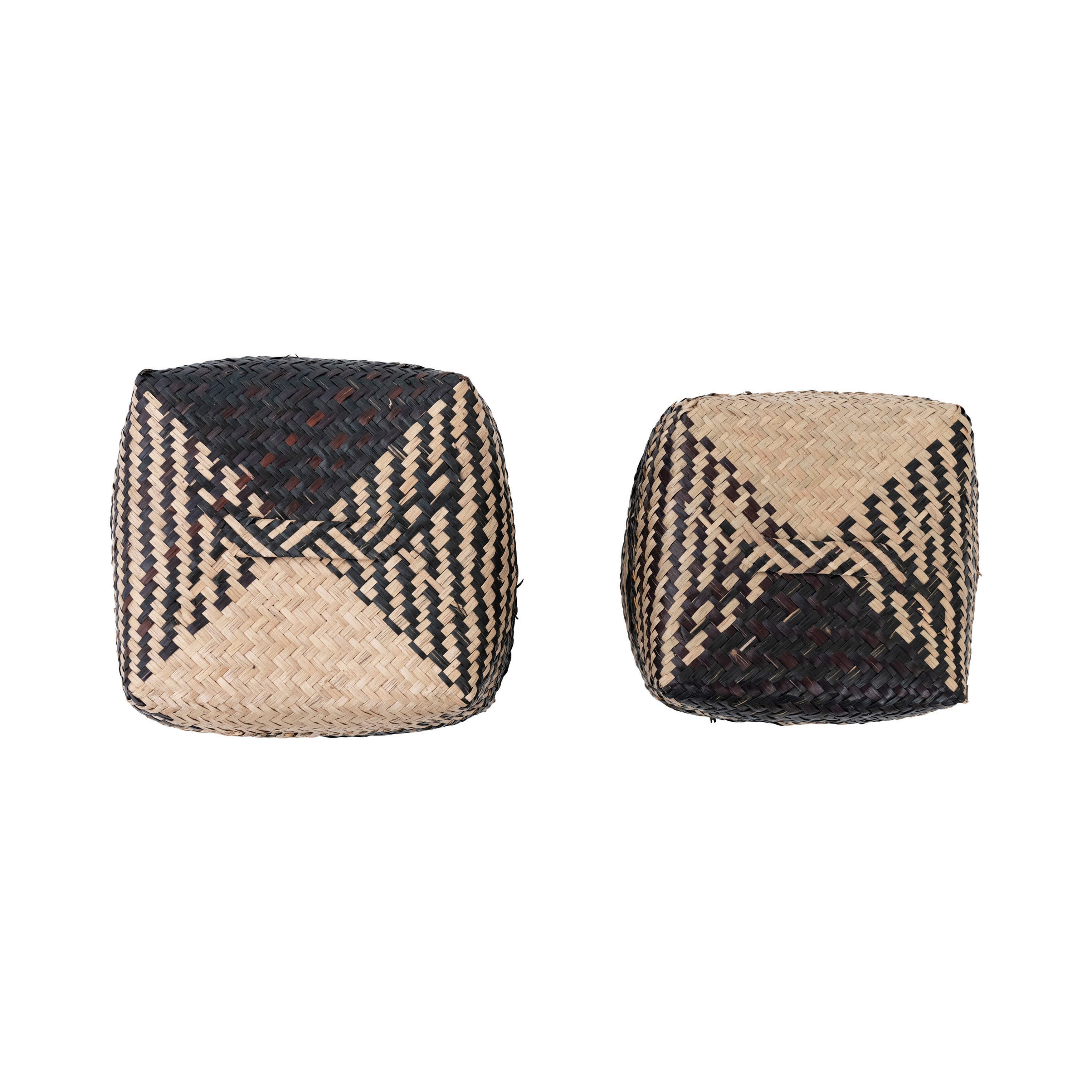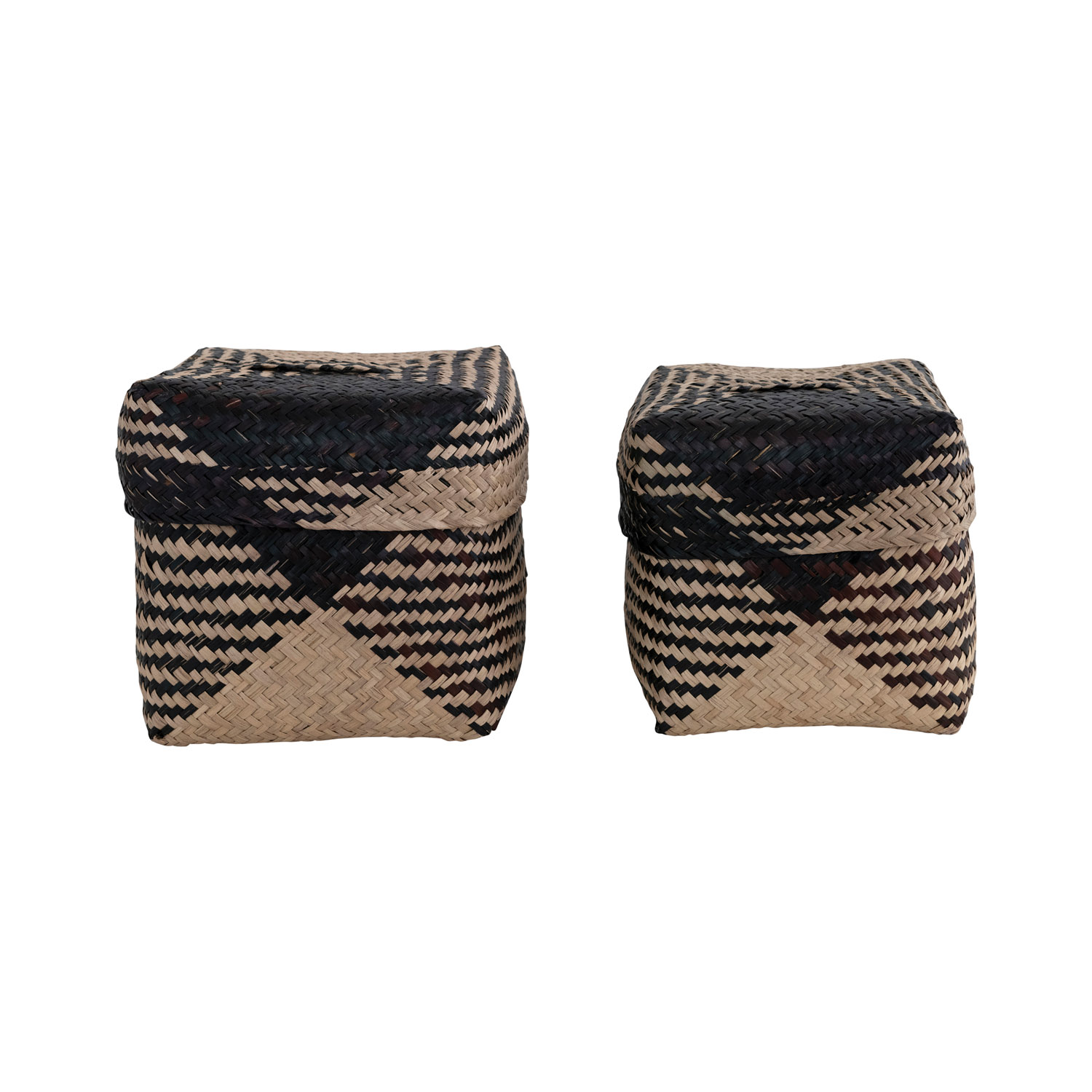 Catalog Name: 9" Square x 9"H & 8" Square x 8"H Hand-Woven Seagrass Boxes, Natural & Black, Set of 2
