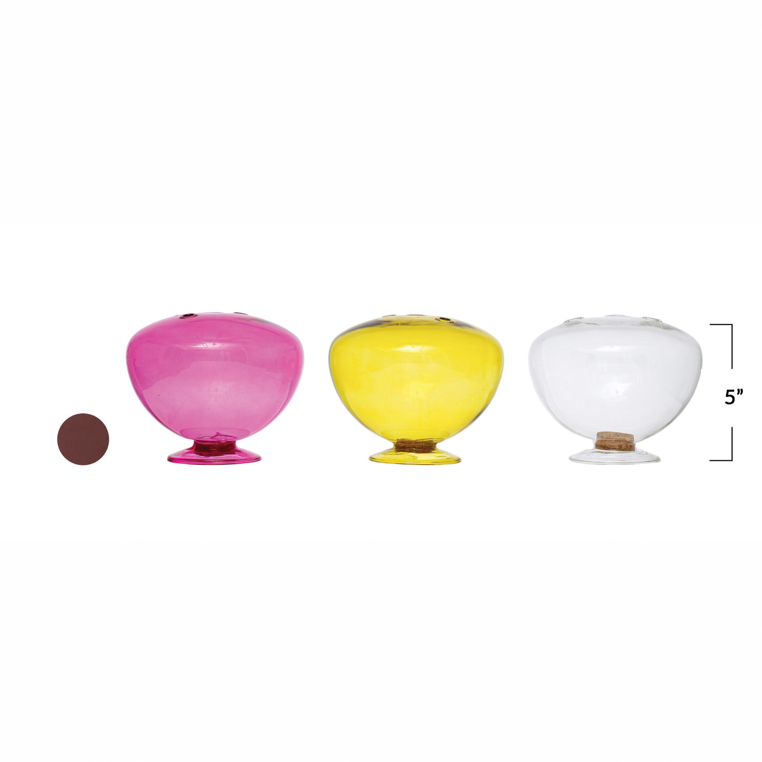 Catalog Name: 5-3/4" Round x 4-3/4"H Glass Match Holder, 3 Colors