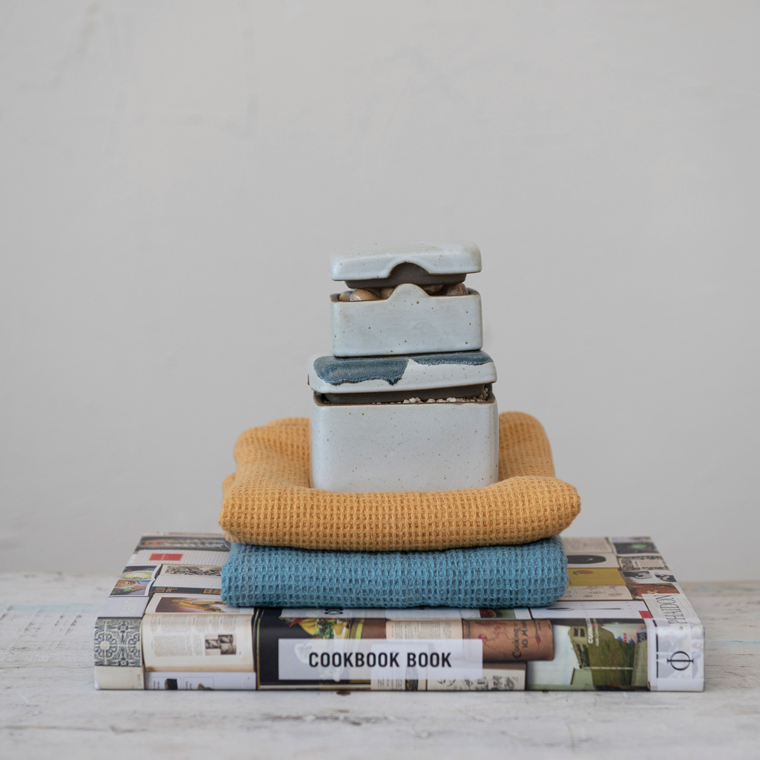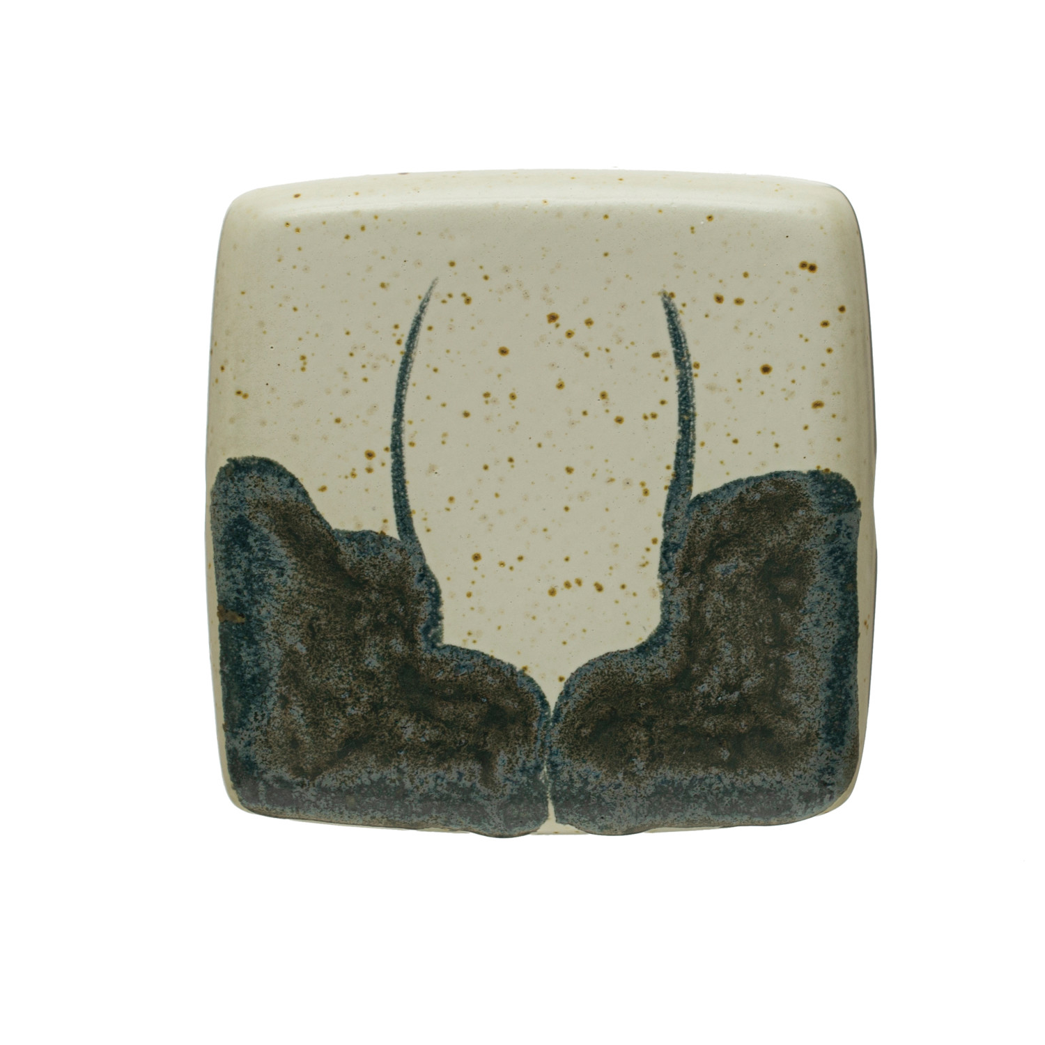 Catalog Name: 3-3/4" Square x 2-3/4"H Hand-Painted Stoneware Box w/ Lid, Reactive Glaze, White & Black (Each One Will Vary)