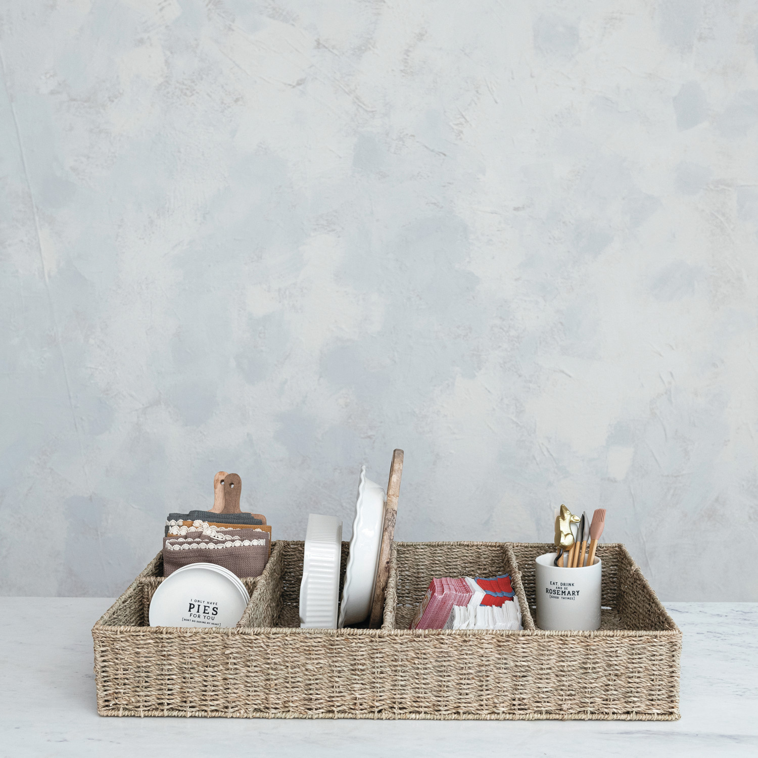 Catalog Name: 31-3/4"L x 20-3/4"W x 5-1/4"H Hand-Woven Seagrass Basket w/ 5 Sections, Natural