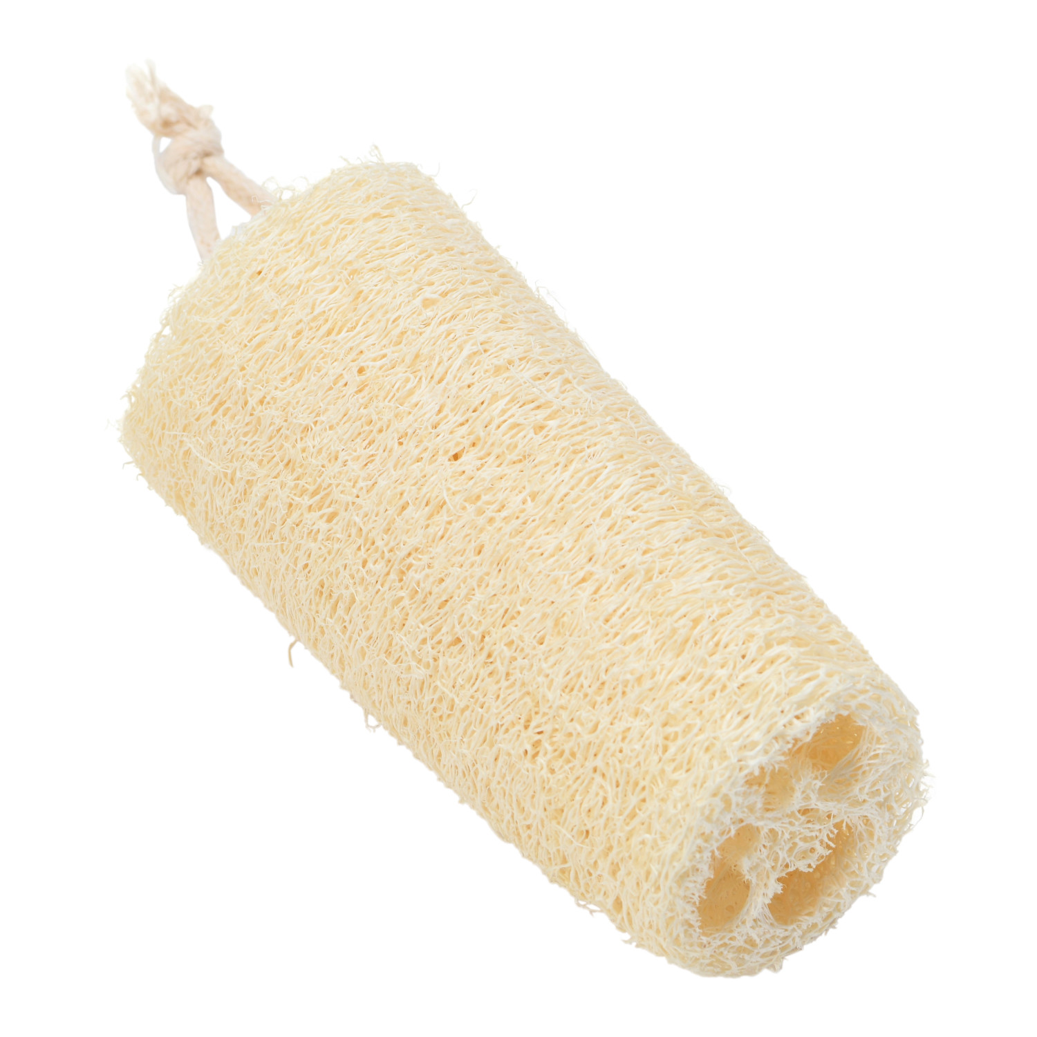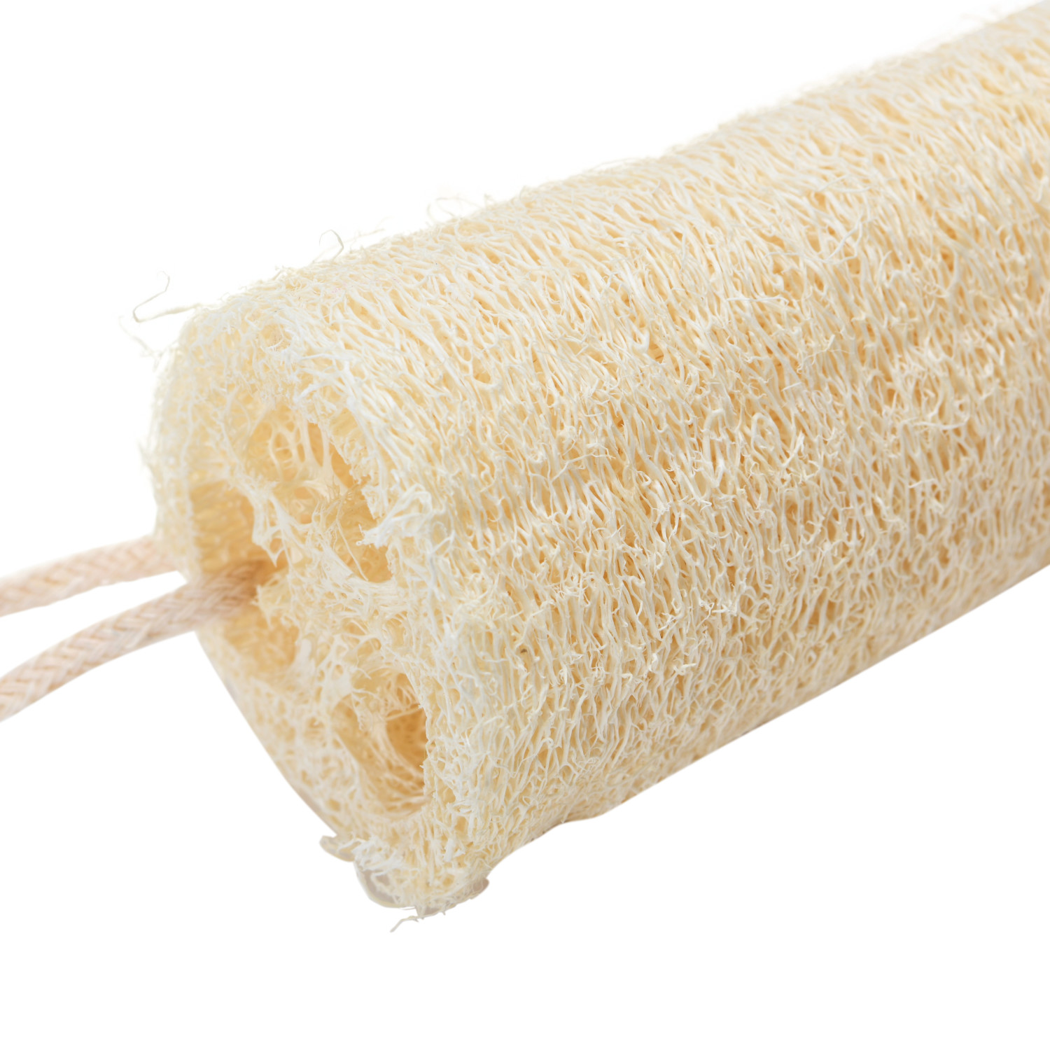 Catalog Name: 2-1/4" Round x 4-3/4"L Loofah w/ Cotton Rope Hanger, Natural