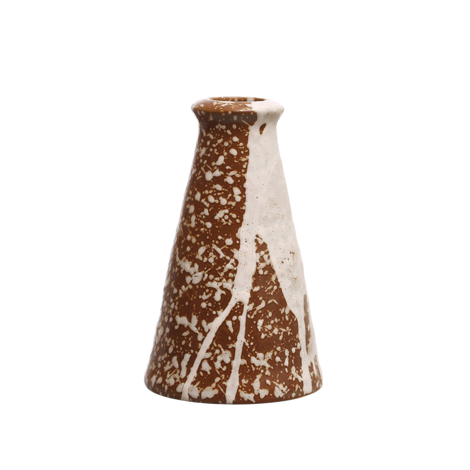 Catalog Name: 3" Round x 5"H Stoneware Taper Holder, Reactive Glaze, White & Brown (Each One Will Vary)