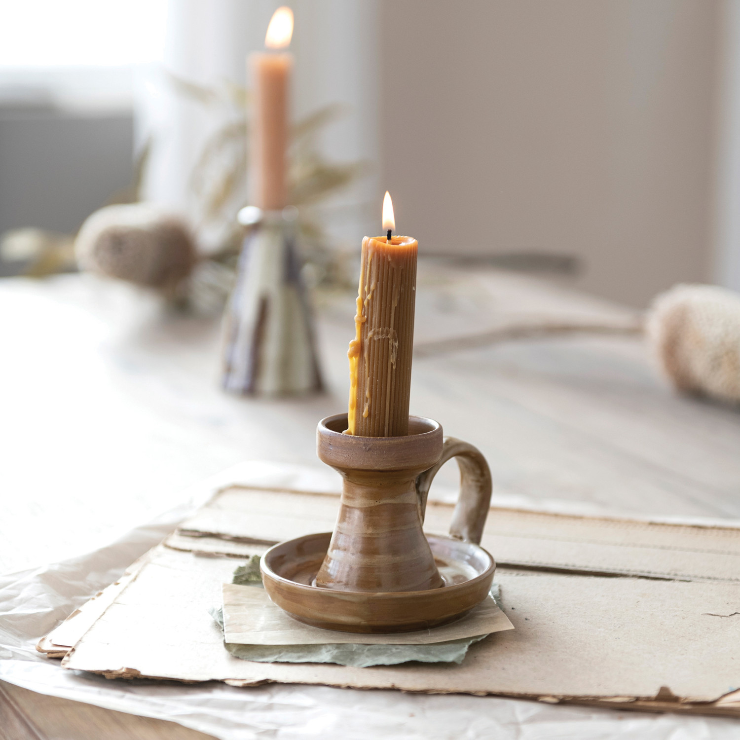 Stoneware Taper Holder & Brown (Each One Will Vary)