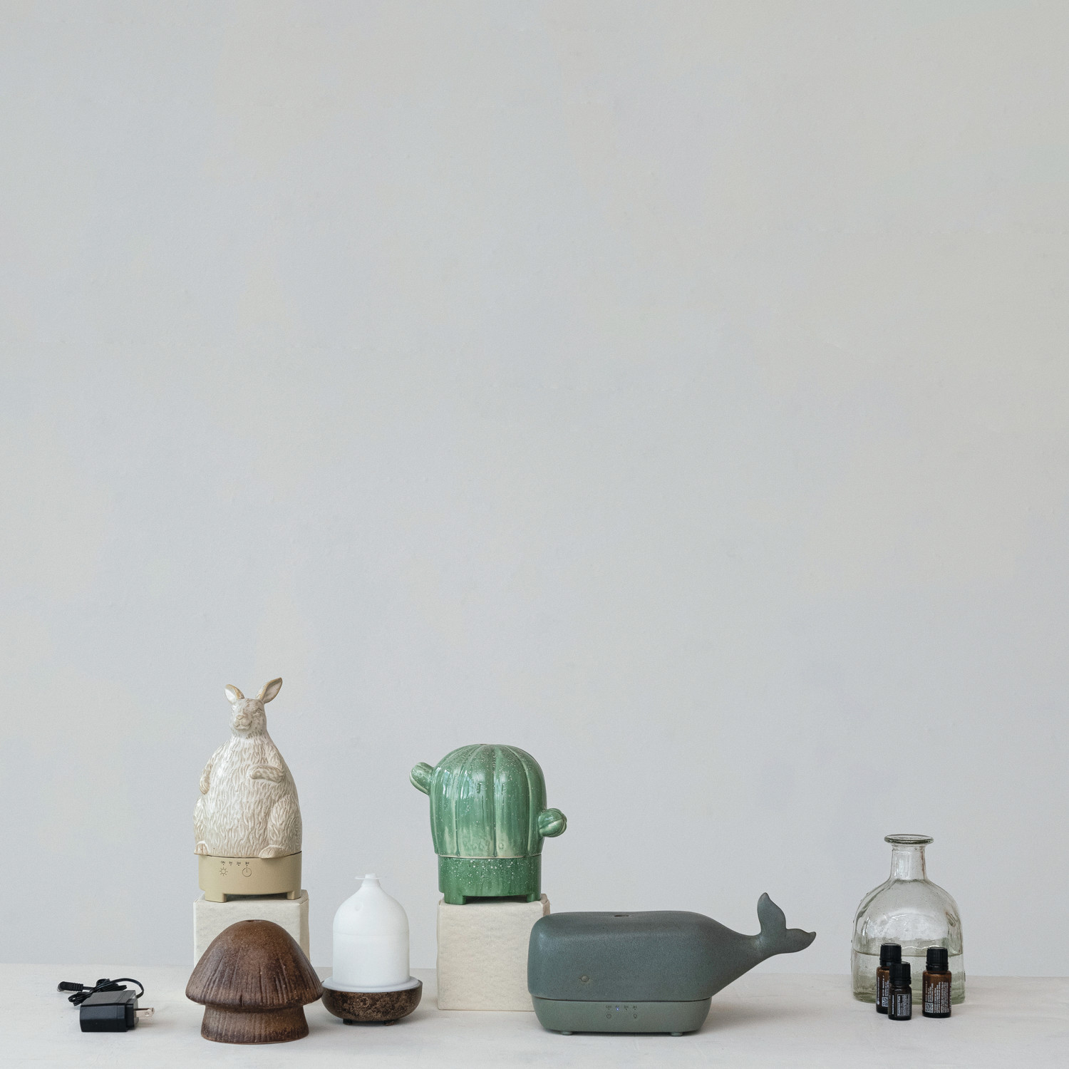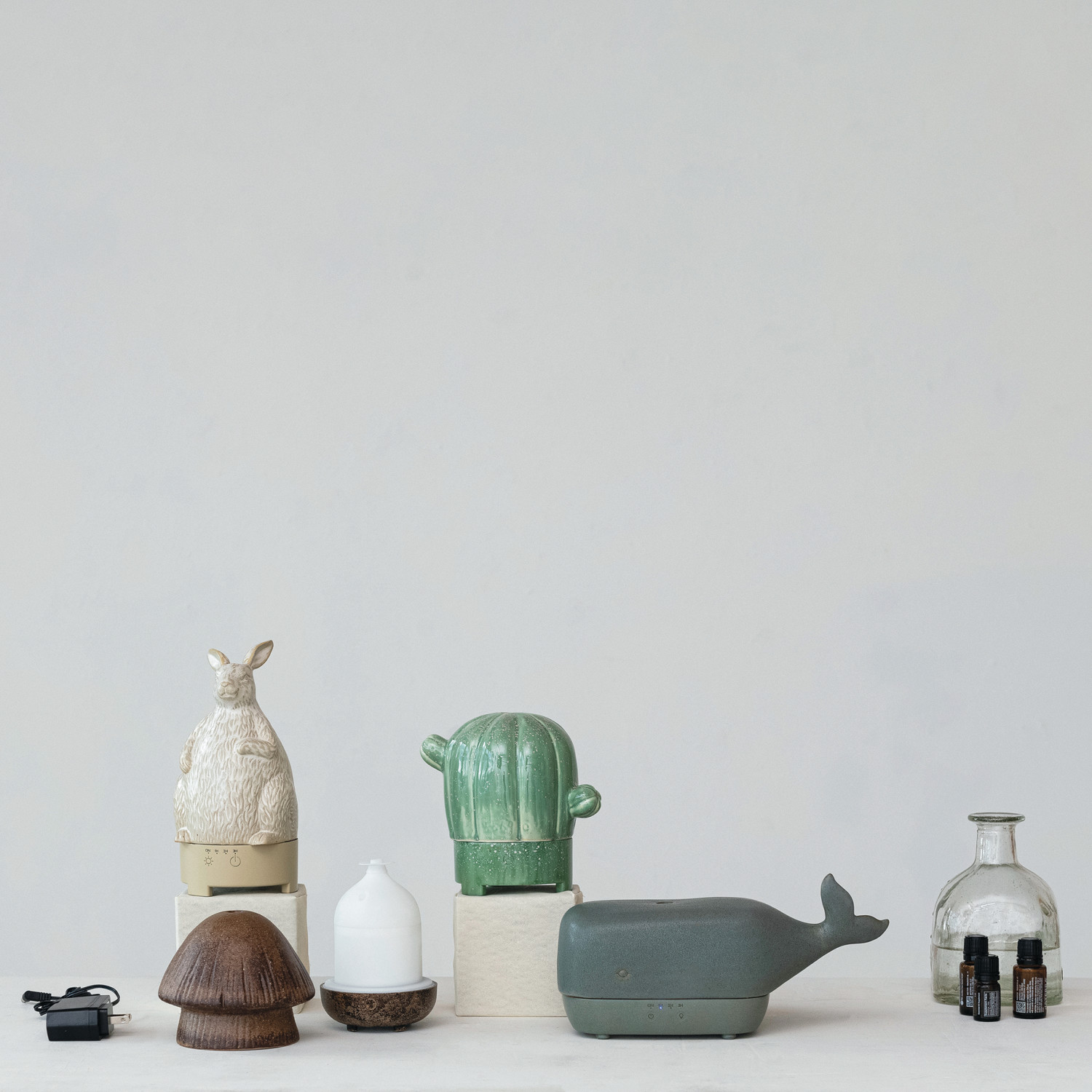 This Textured Stoneware Mushroom Shaped Oil Diffuser brings the allure of the forest indoors with its rich brown hue and distinctive texture. The reactive glaze technique creates a unique pattern on each diffuser, adding to its charm. A convenient 1-3 hour timer allows for worry-free operation, perfect for maintaining a consistent ambiance. The diffuser's mushroom shape is not only whimsical but also a nod to nature's beauty, making it a delightful addition to any space seeking a sprinkle of enchantment. It measures 5 inches in diameter and 5.75 inches in height, a quaint size for nestling among varied indoor plants. Its compact size ensures it fits snugly wherever it's placed, inviting a warm and mystical vibe into the surroundings.