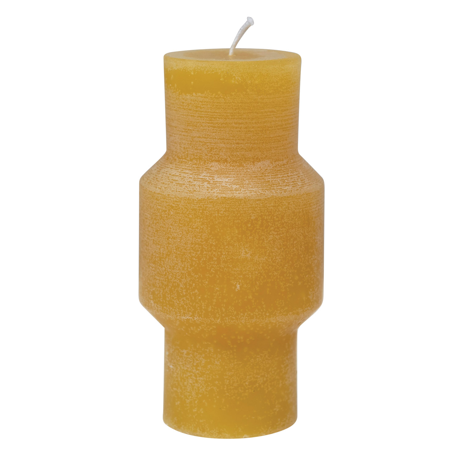 This intricately carved pillar candle showcases a striking sculpturesque design. Unscented totem pillar candle in honey. Add warmth and elegance to any living or dining space with this stunning, sculptural totem pillar candle. Unscented; Made from 100% Paraffin Wax.