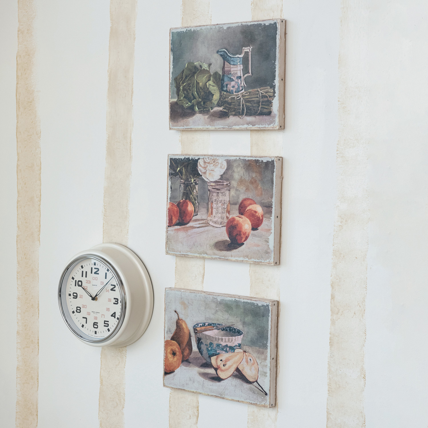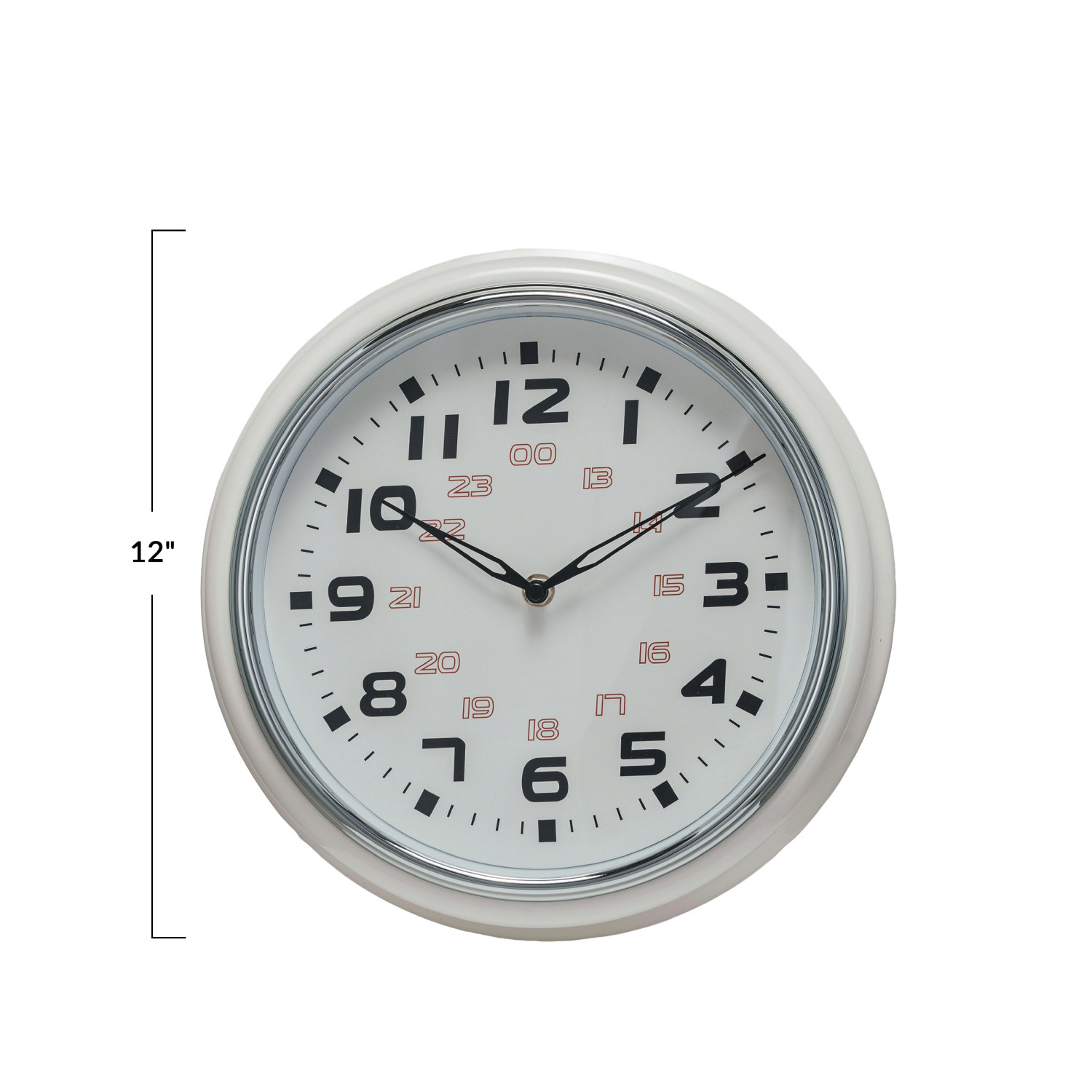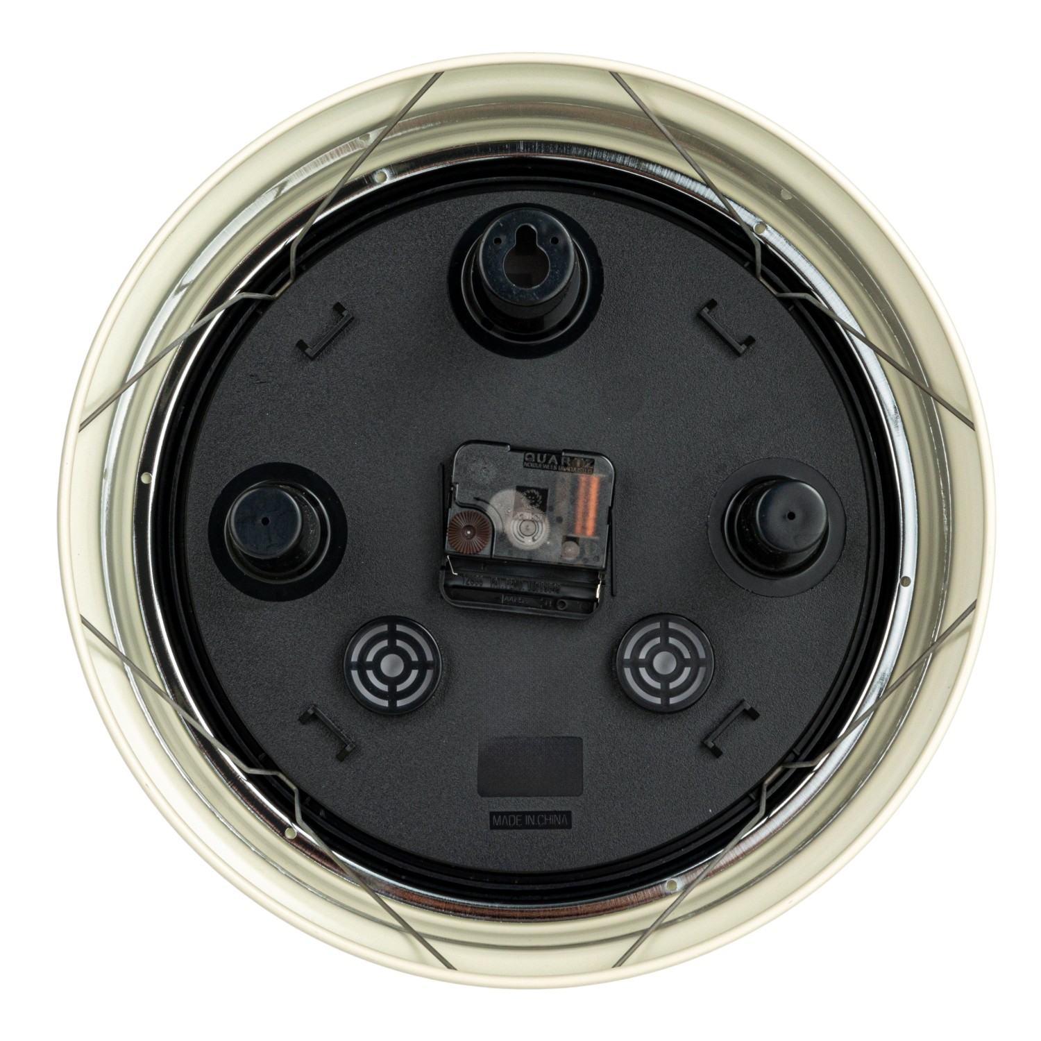 Catalog Name: 12" Round Metal Wall Clock, Cream Color (Requires 1-AA Battery)
