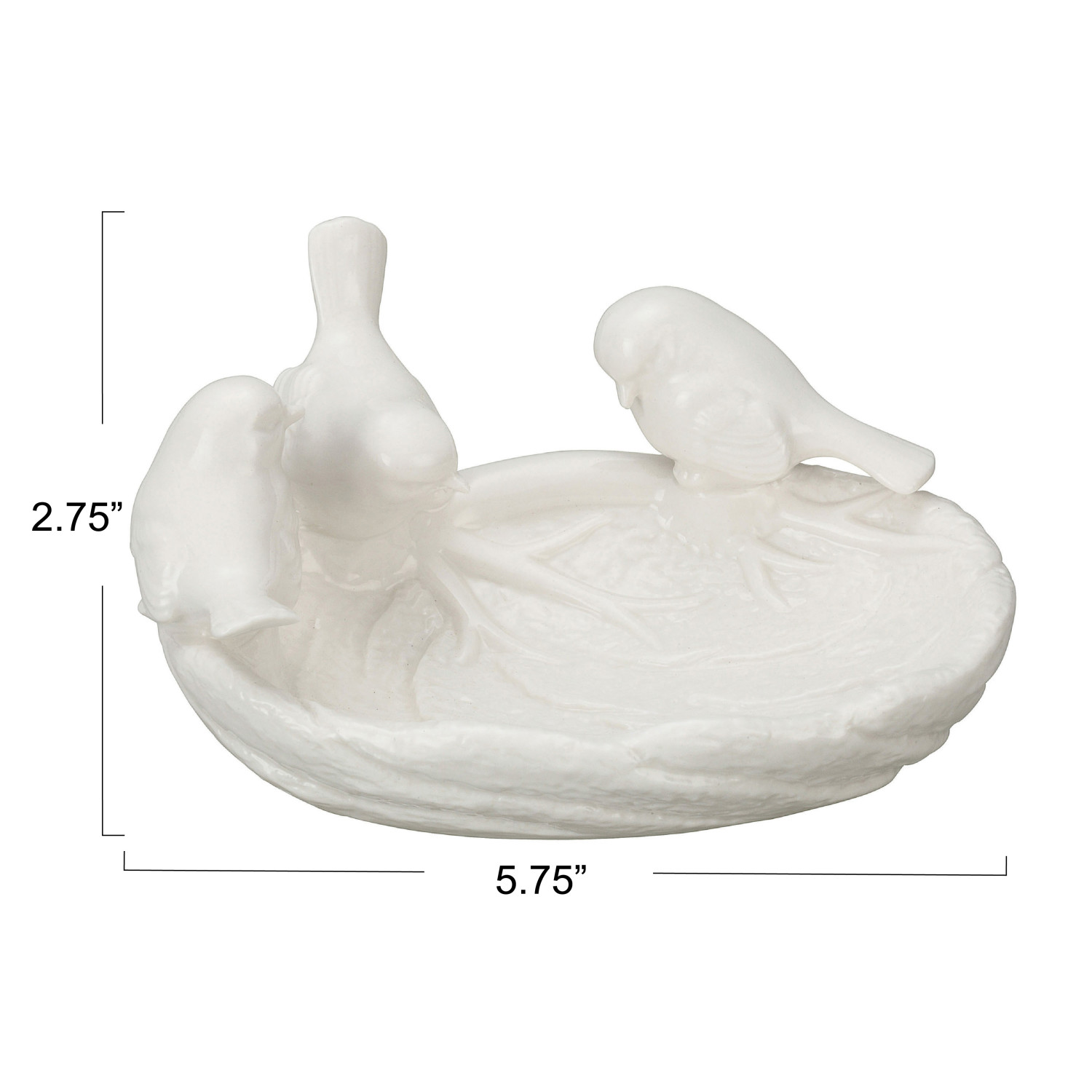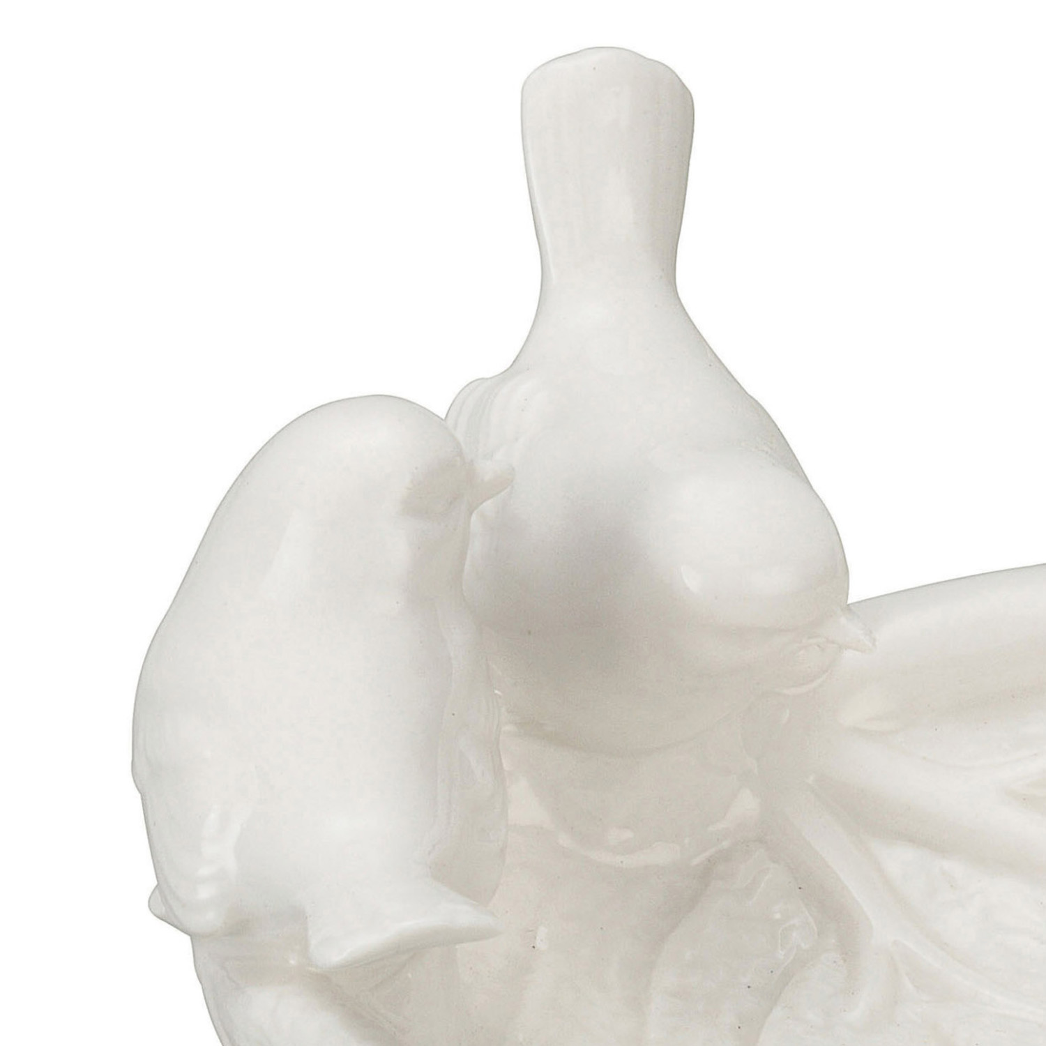 Catalog Name: 5-3/4"L x 4-1/4"W x 2-3/4"H Decorative Ceramic Leaf Dish w/ 3D Birds, White