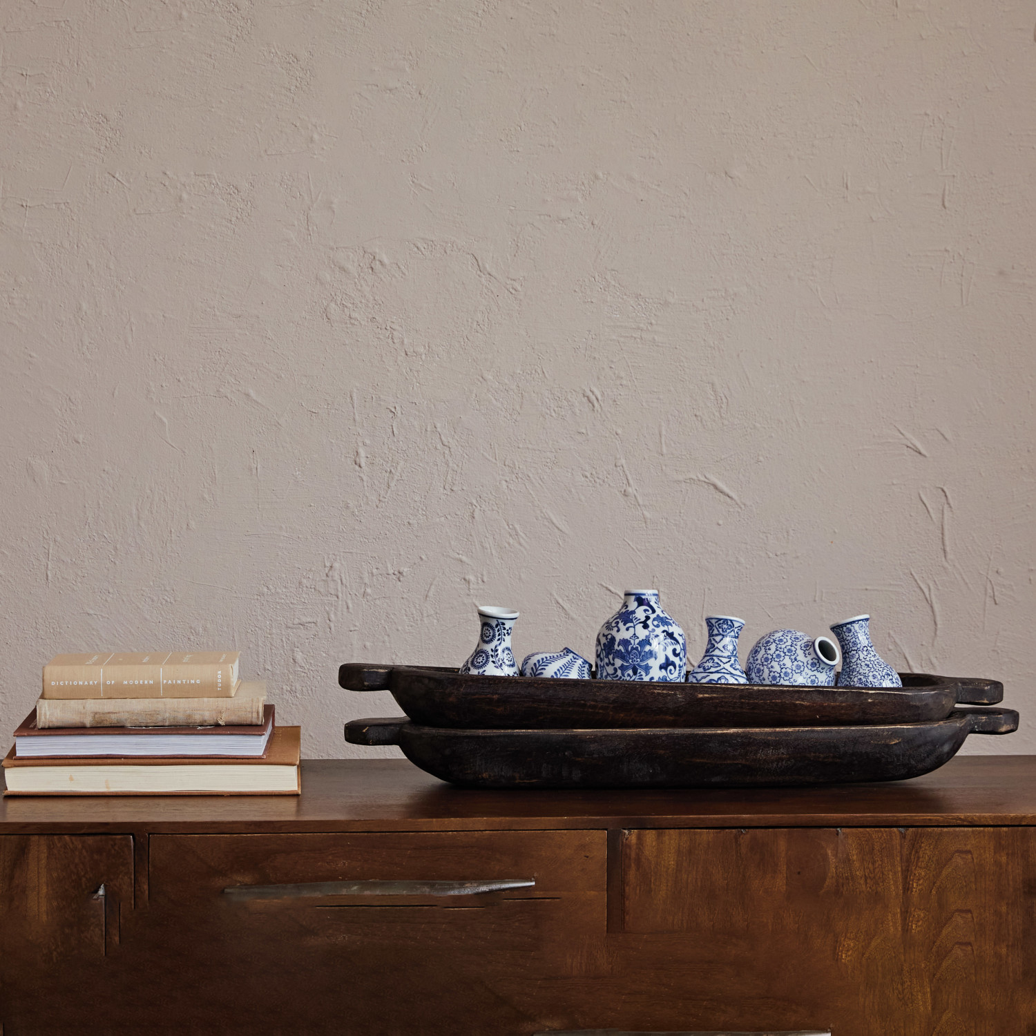 Catalog Name: Approximately 29"L x 7-1/2"W x 3"H Found Decorative Wood Trug w/ Handles, Black (Each One Will Vary)