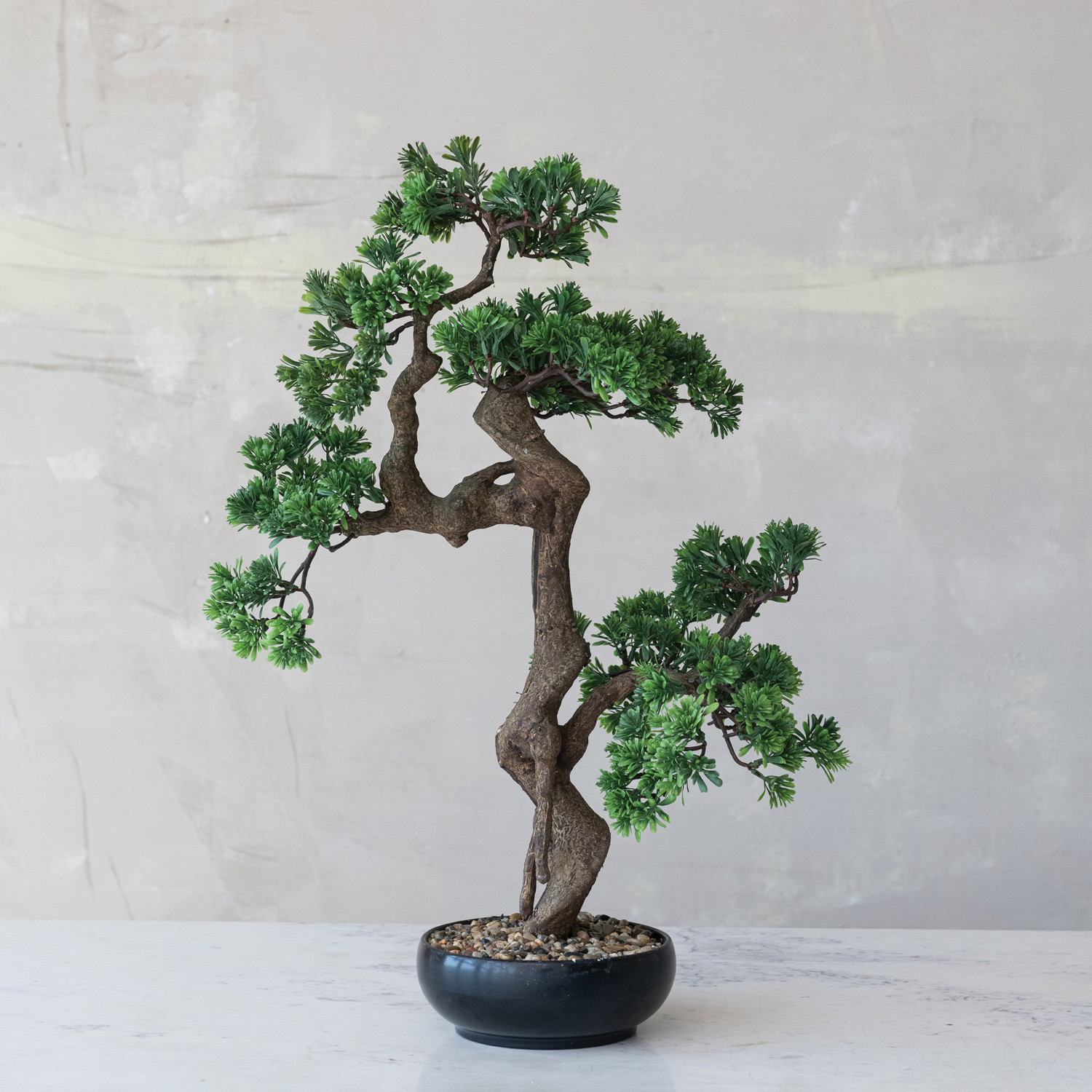 Faux Bonsai Tree in Ceramic Pot with Pebbles