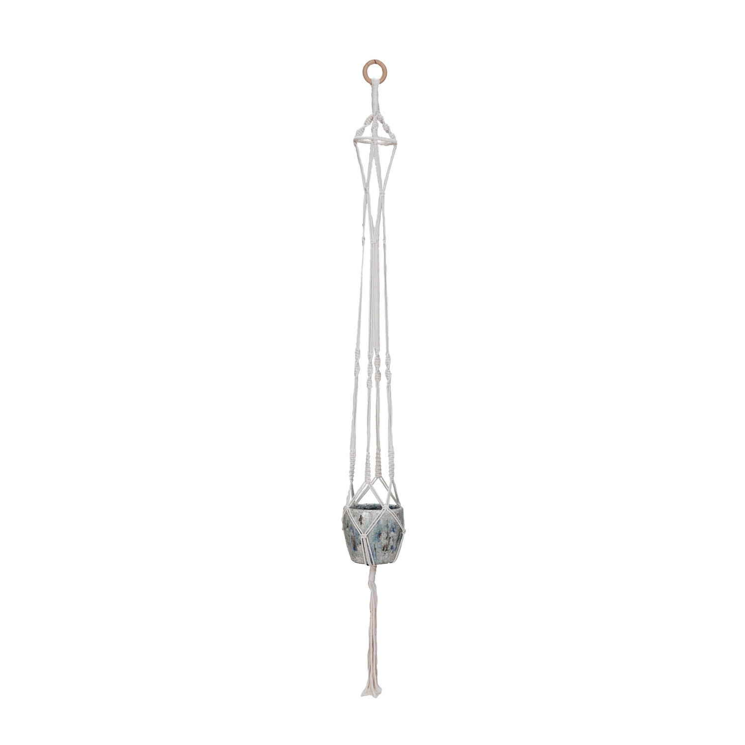 Catalog Name: 2" Round x 57"H Cotton Macrame Plant Hanger w/ Wood Ring, Natural