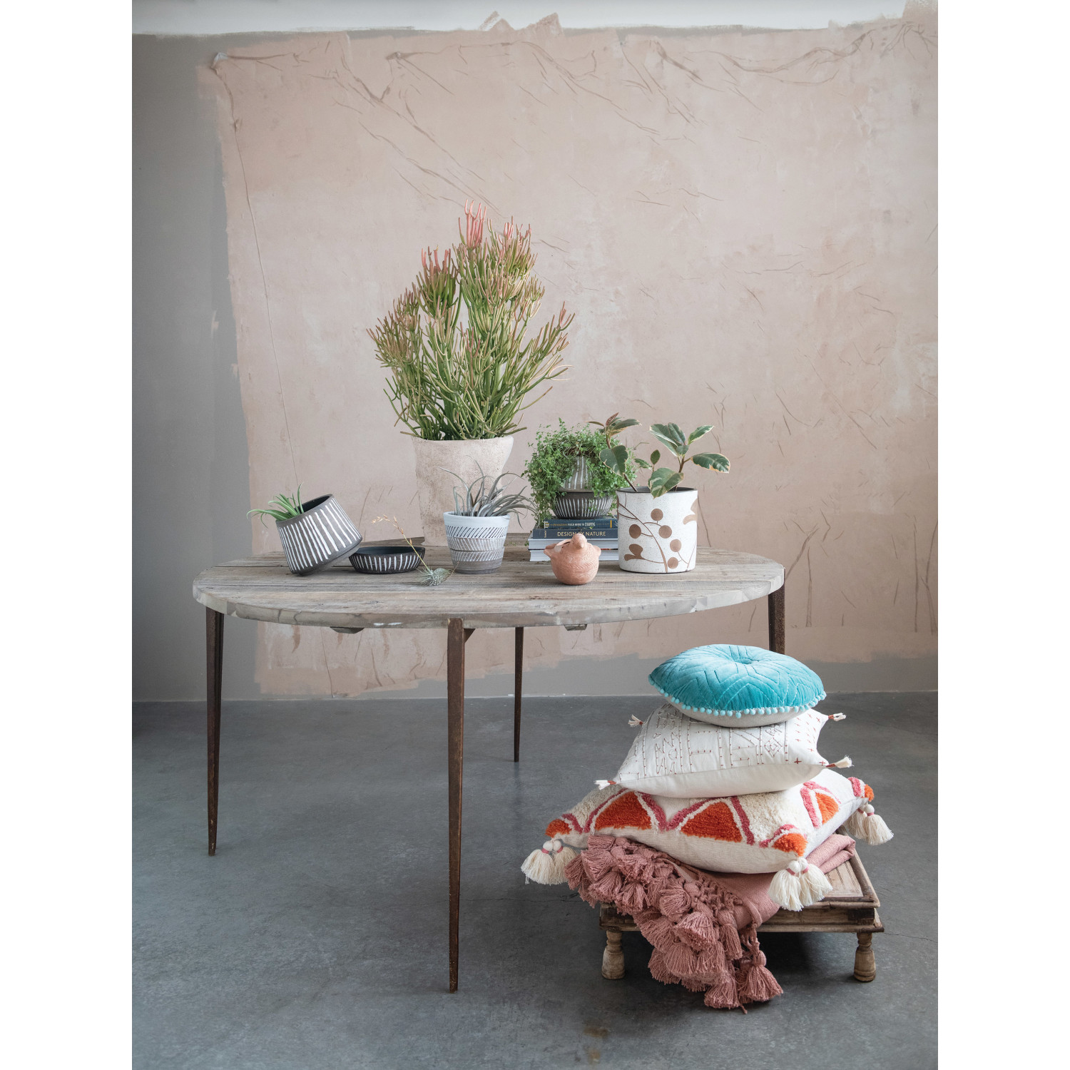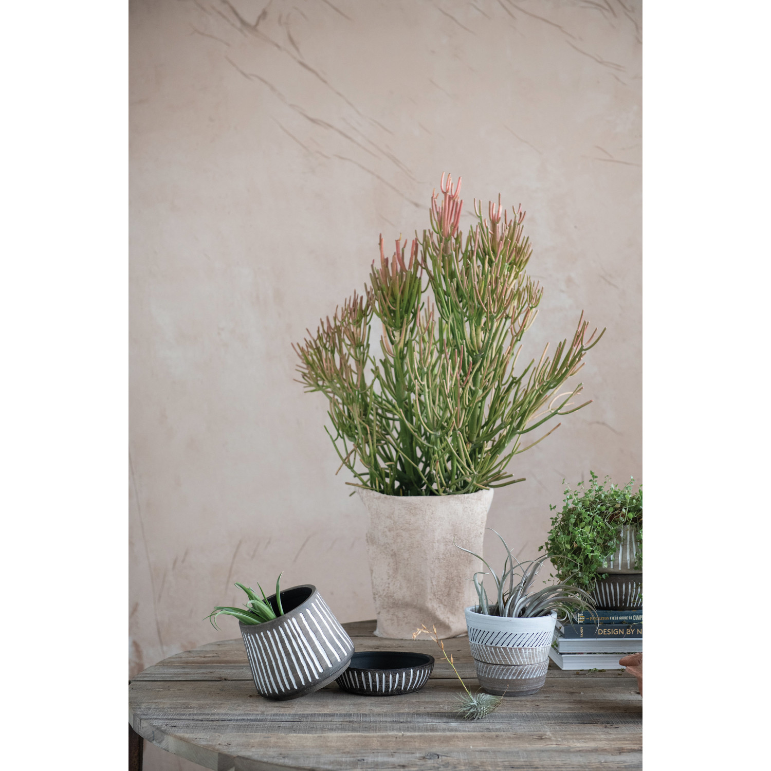 Hand-Painted Debossed Planter and Saucer, Set of 2