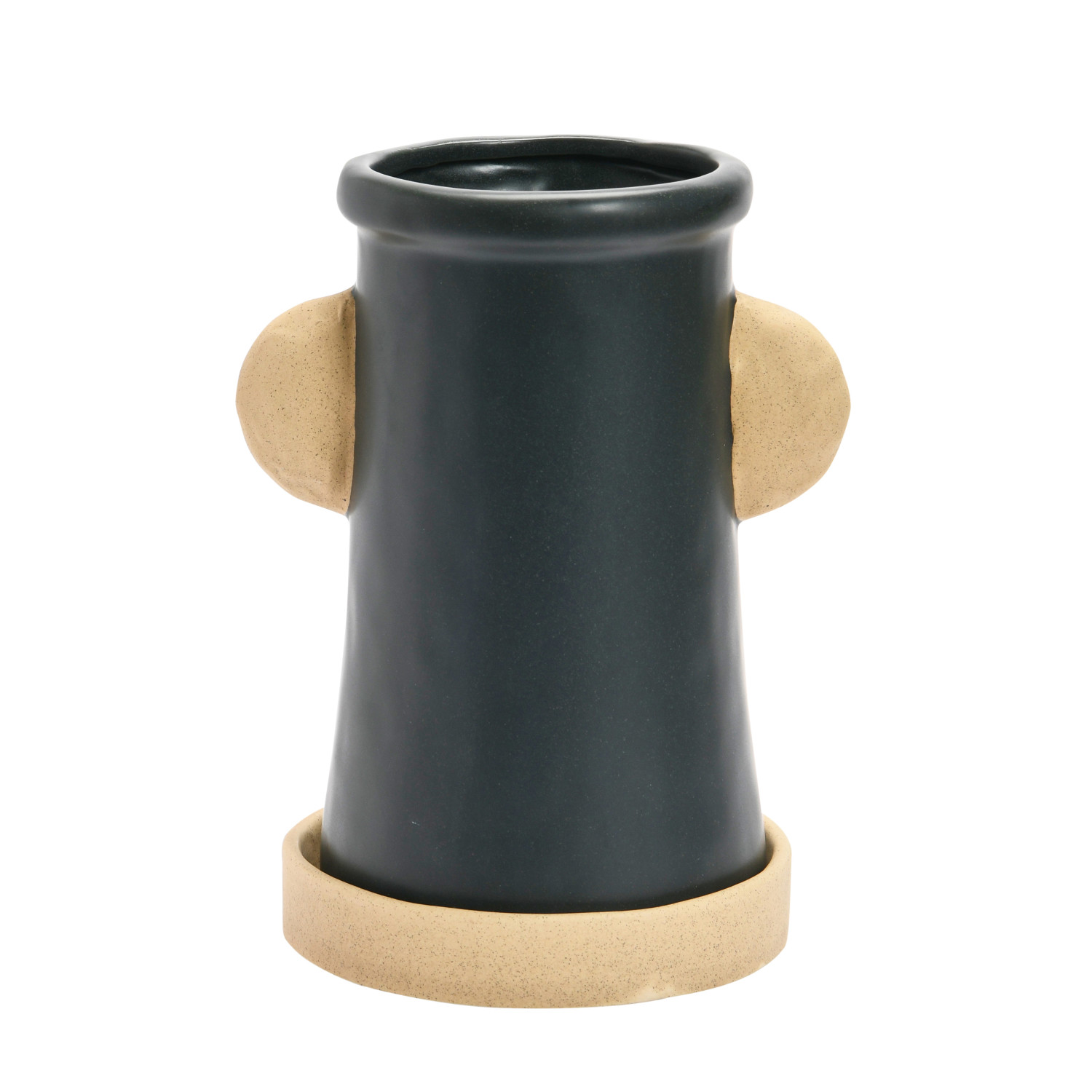 This playful stoneware planter showcases a minimalist 2-tone face in a stylish matte finish.