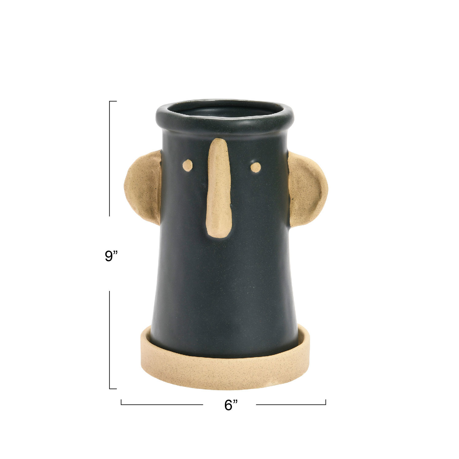 Catalog Name: 6" Round x 9-1/4"H Stoneware Face Planter w/ Saucer, Brown & Cream Color, Set of 2 (Holds 5" Pot)