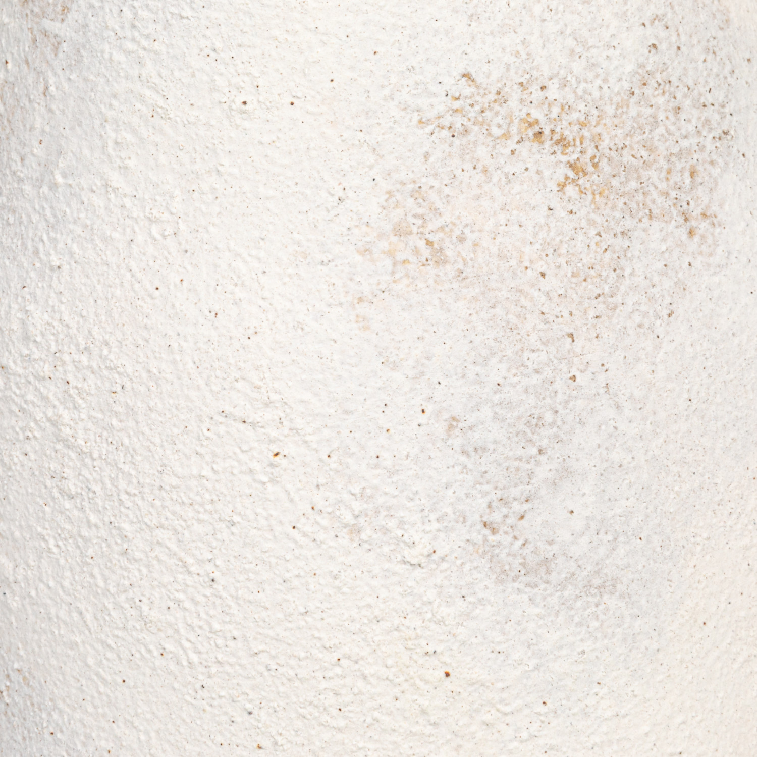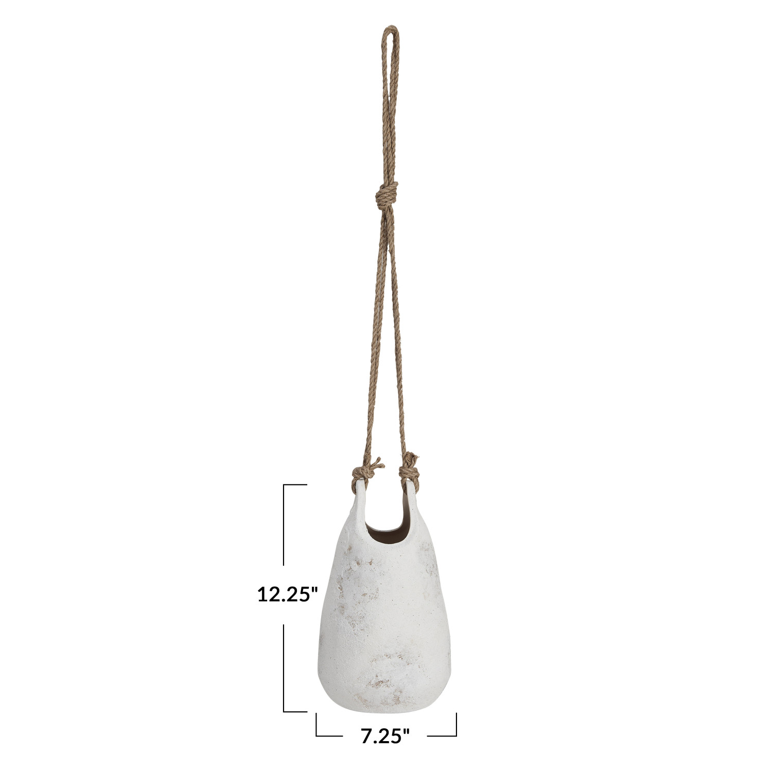 Catalog Name: 7-1/4" Round x 12-1/4"H Hanging Coarse Stoneware Planter w/ Jute Rope Hanger, Volcano Finish, White (Each One Will Vary)