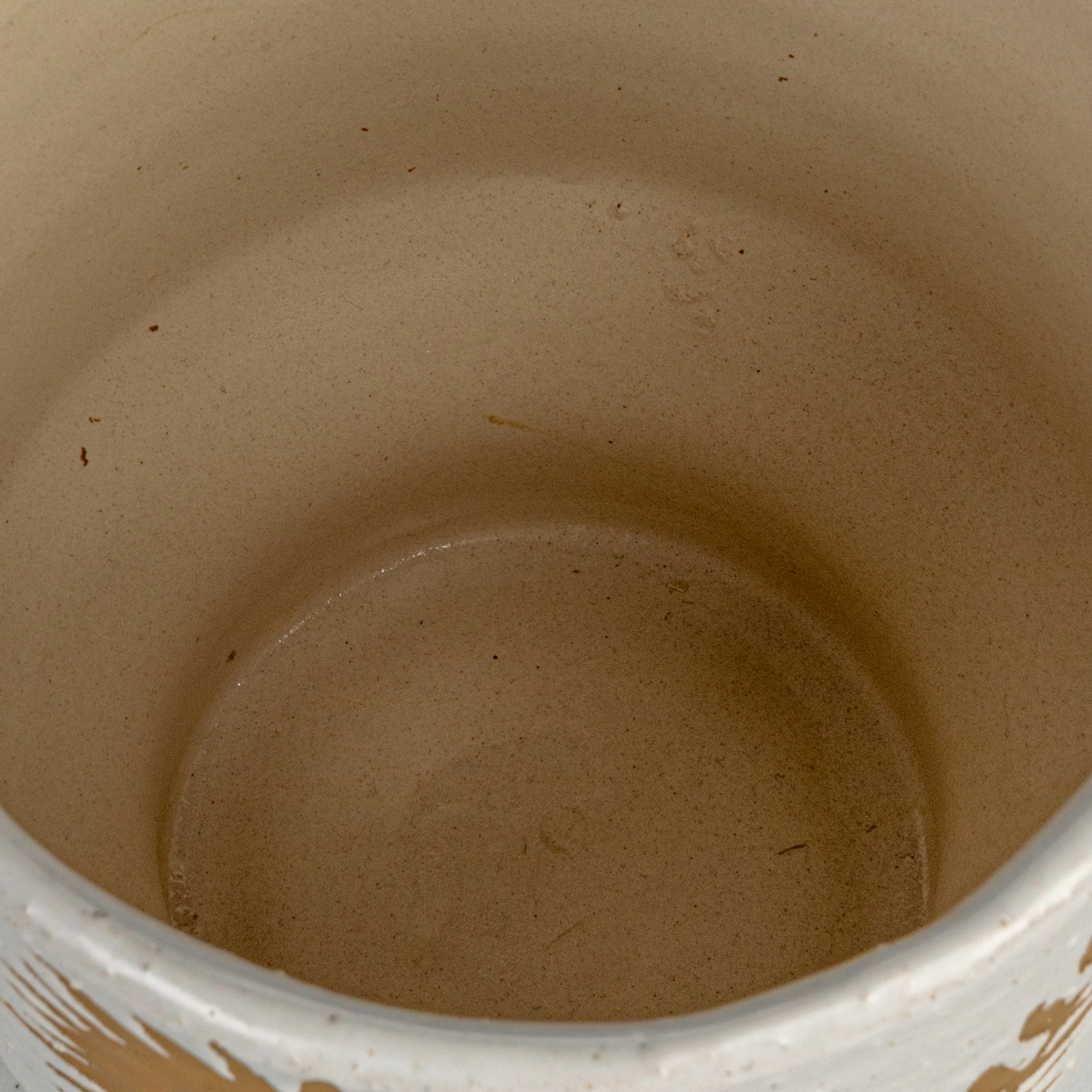 Catalog Name: 5-1/2" Round x 5-1/2"H Coarse Stoneware Planter w/ Flower, Reactive Glaze, White & Mustard Color (Holds 5" Pot) (Each One Will Vary)