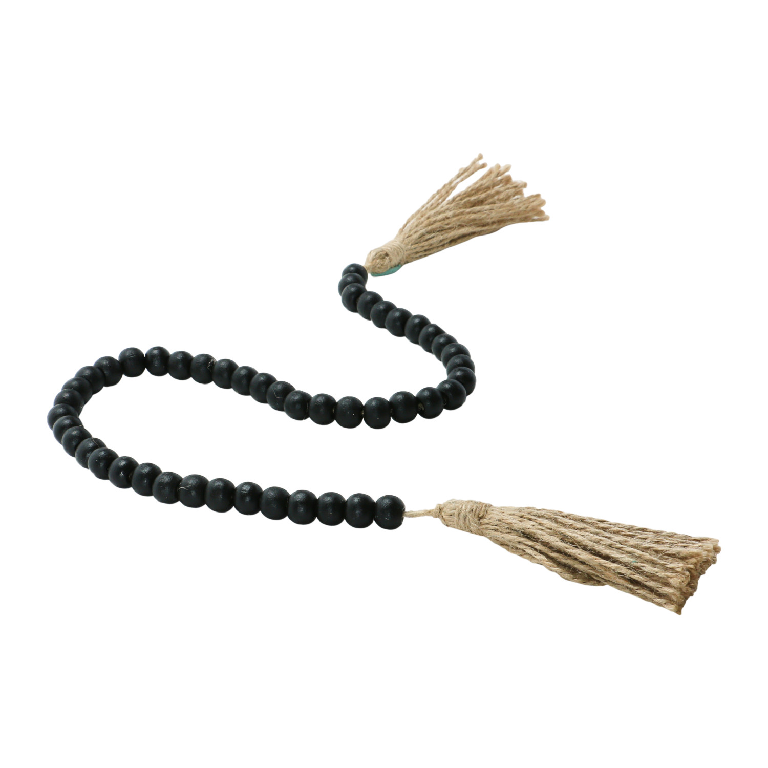 Catalog Name: 28"L Wood Bead Garland w/ Jute Tassels, Distressed Black & Natural