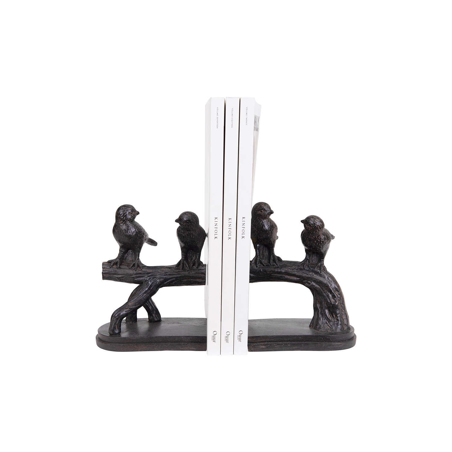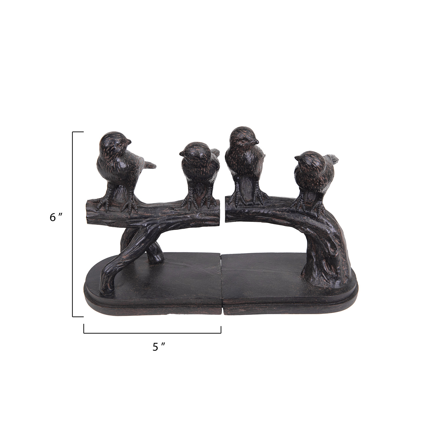 Catalog Name: 5"L x 4-1/4"W x 6-1/4"H Resin Birds on Branch Bookends, Rust Finish, Set of 2